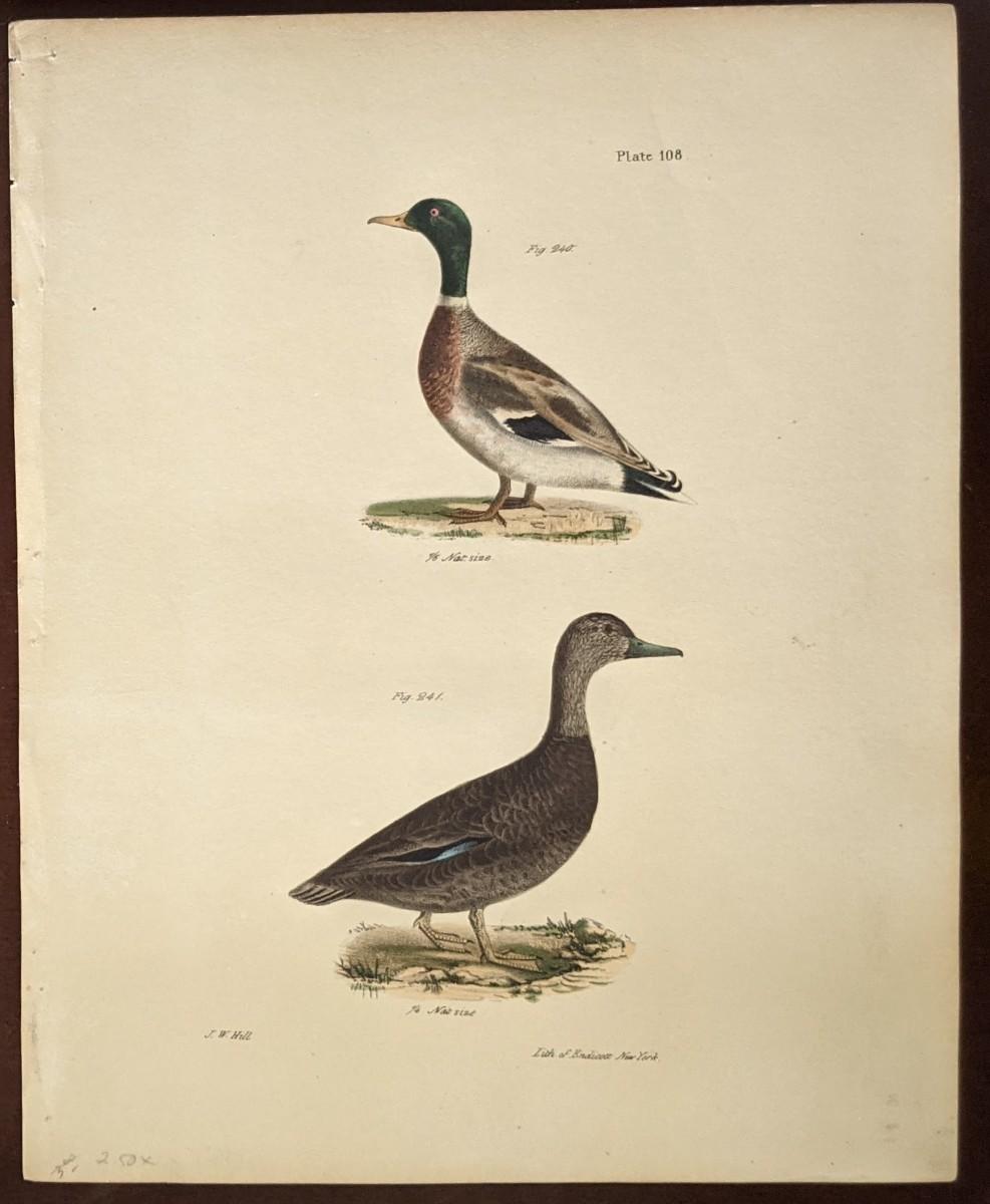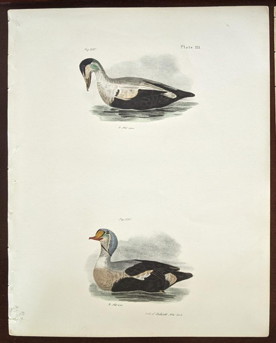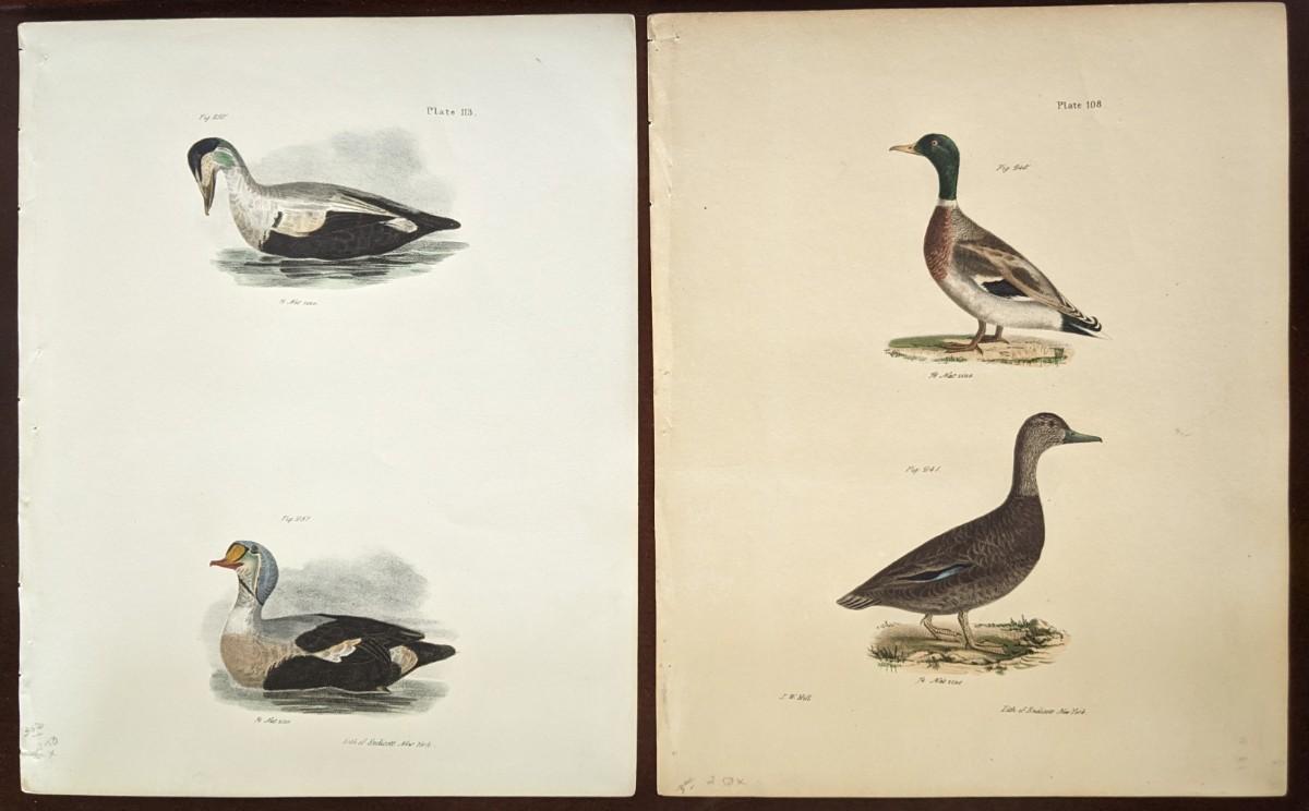 J.W. Hill Antique Hand-colored Lithograph (1844) Plates 108 & 113 from "Zoology of New York"