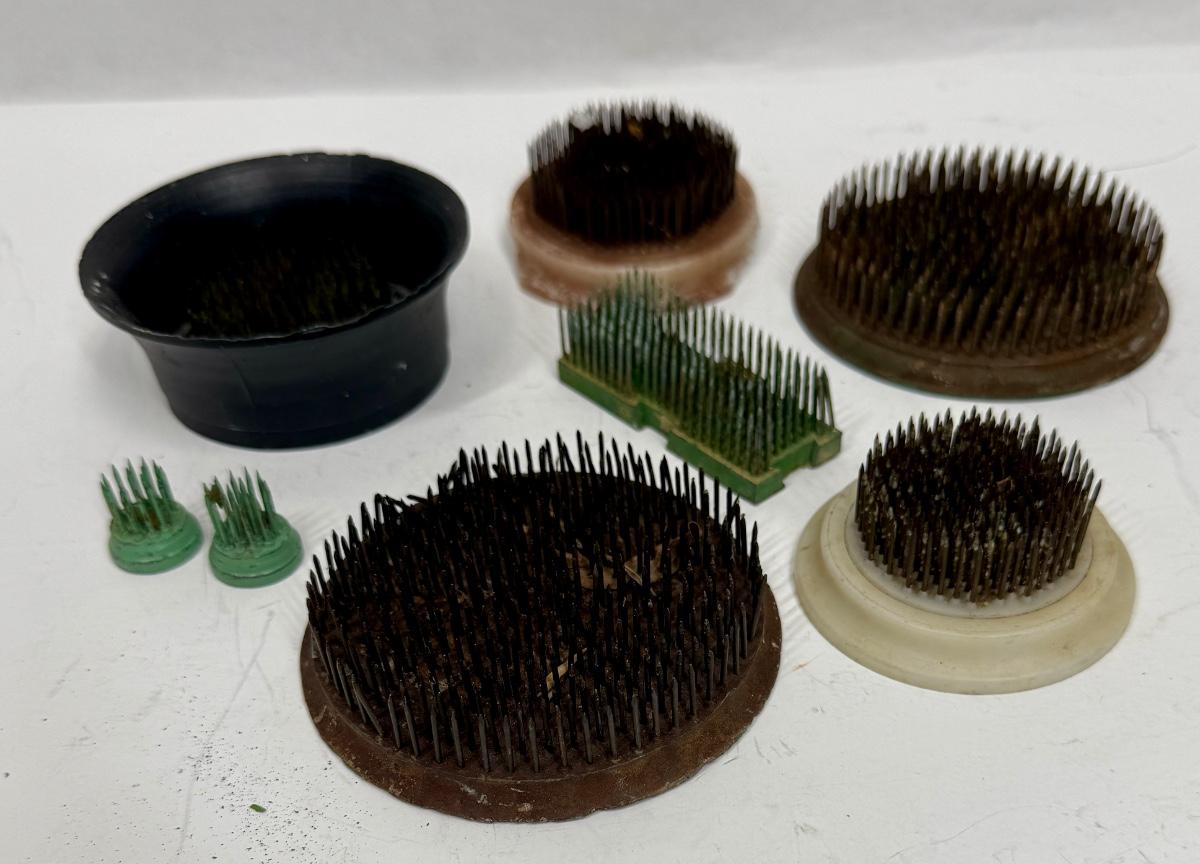 8 pc lot of Metal Flower Arrangement Frogs many colors