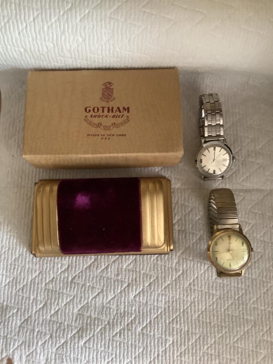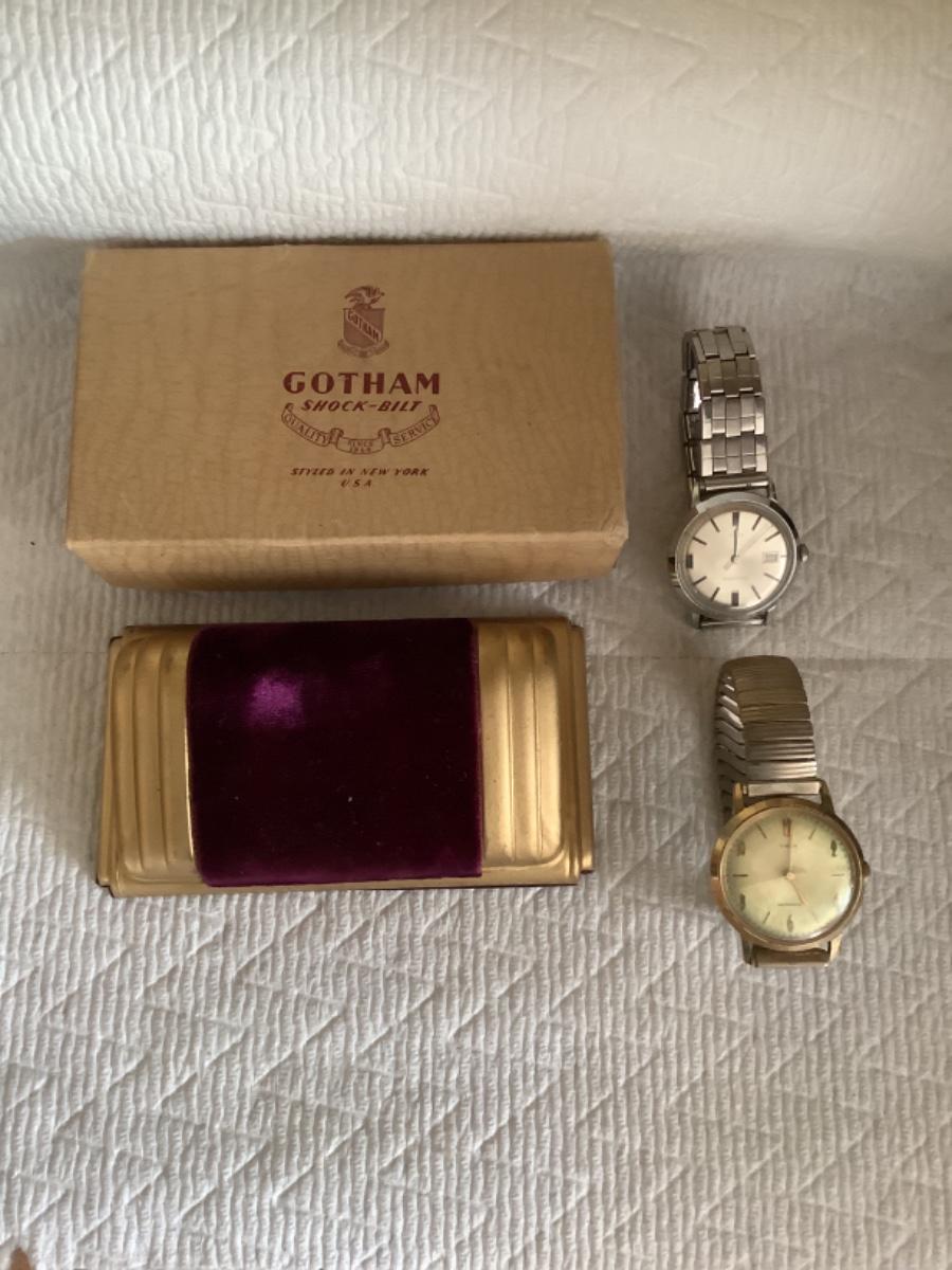K - 1017 Pair of Times Men’s Watches & Antique Gotham Watch Box