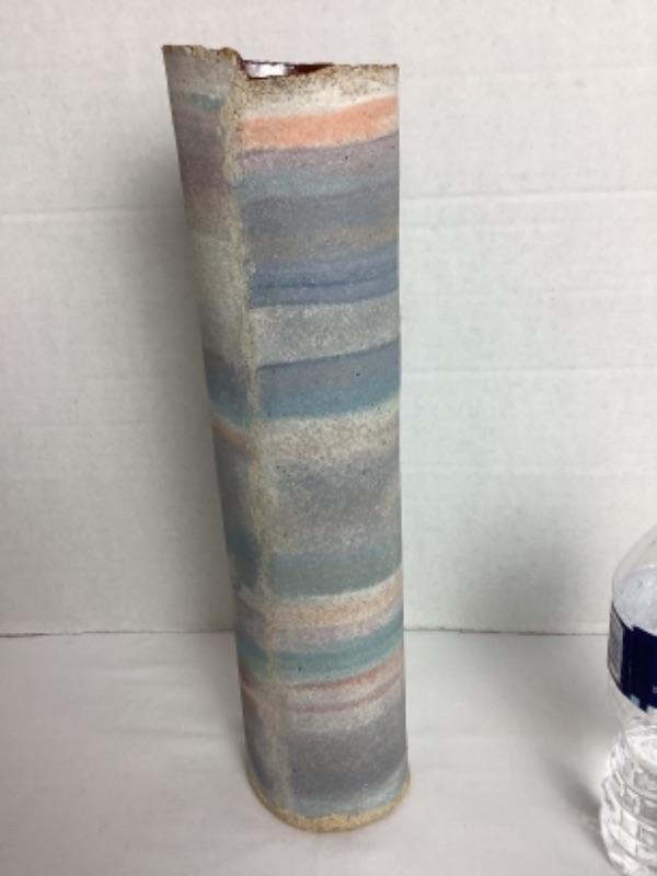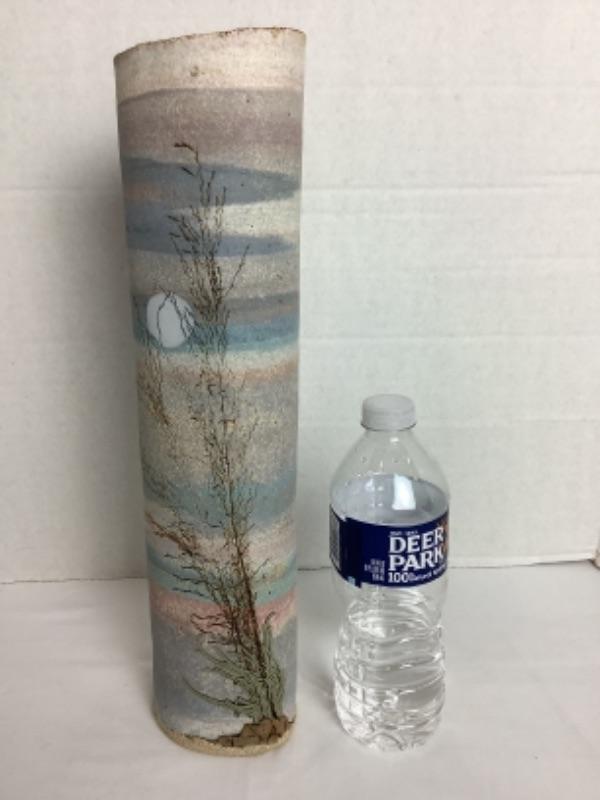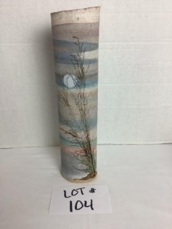 K - 104 Artisan Signed Cylinder Scenic Pottery Vase