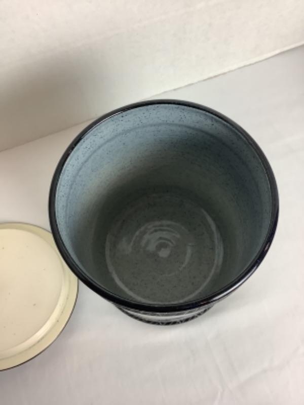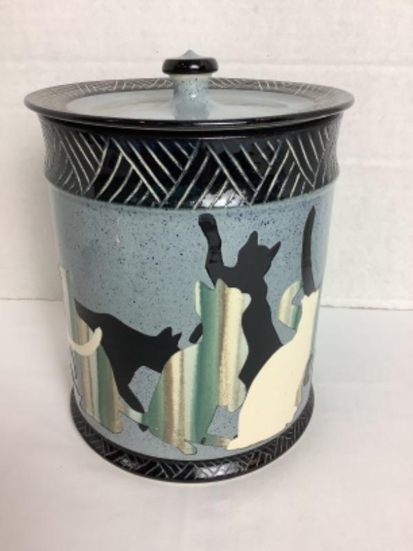 Artisan Signed Glazed Pottery Jar with Lid -