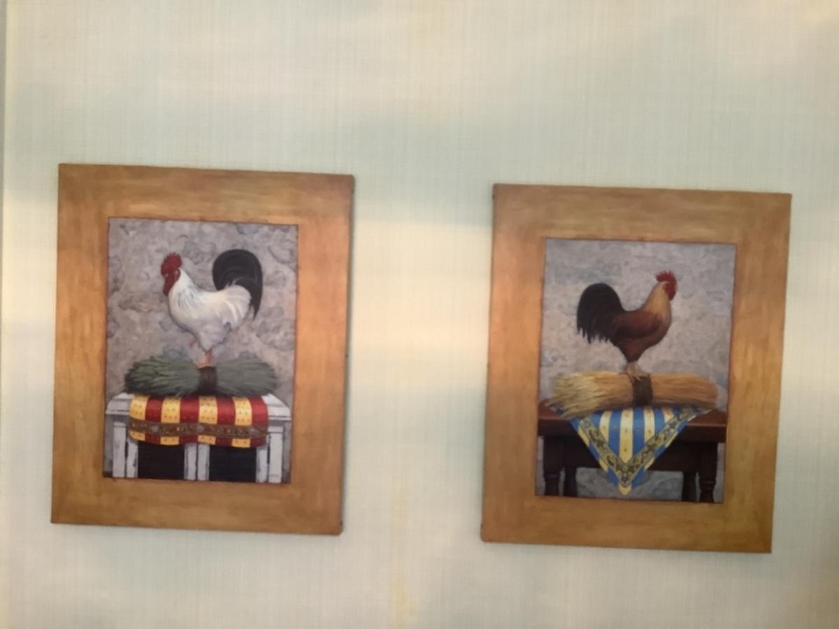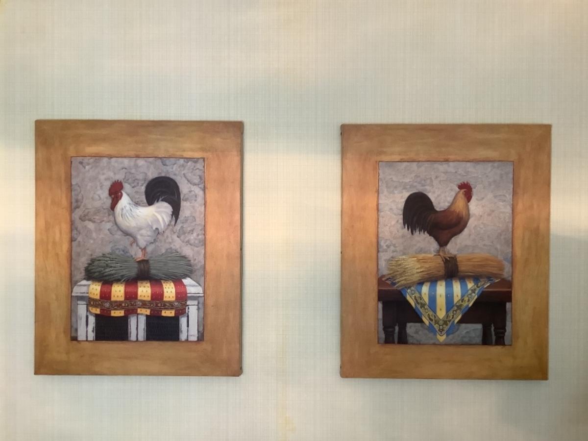 K. 1144. Pair of French Country Rooster Prints on Canvas, J. Wiens