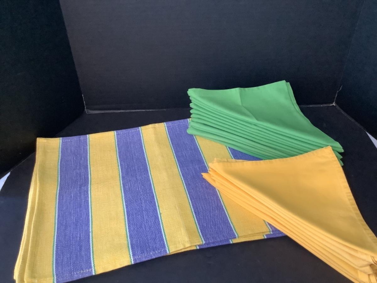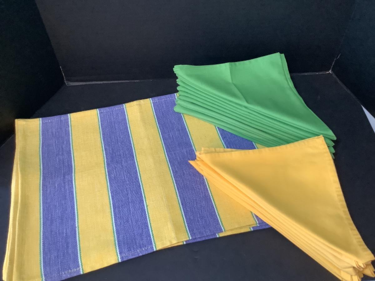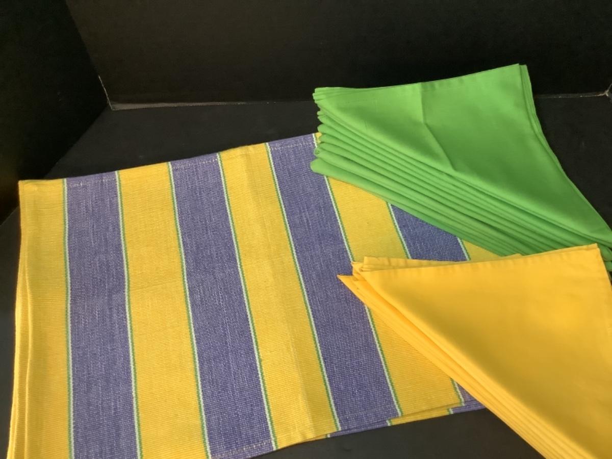 Lot of Striped Placemats & Green / Yellow Napkins -