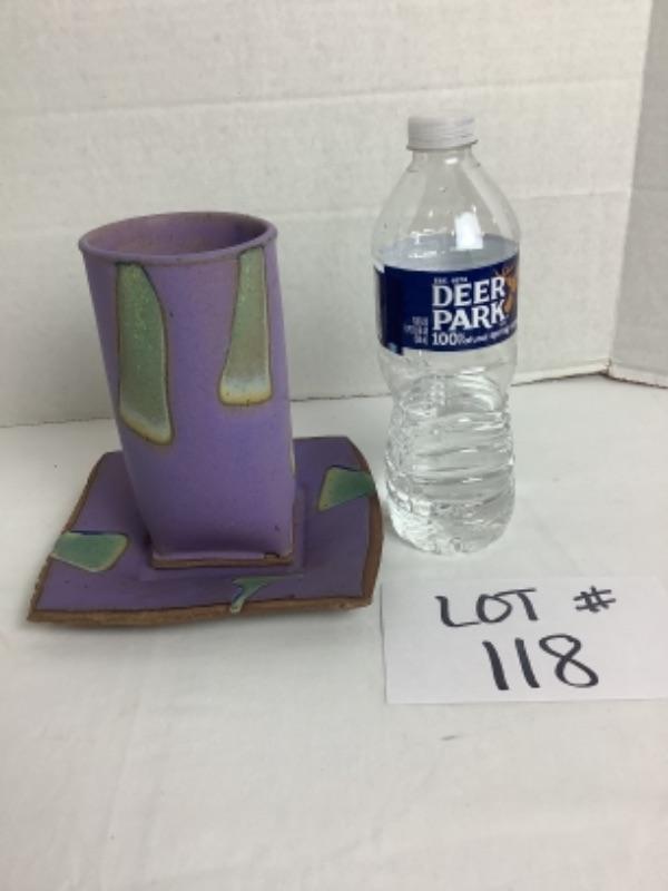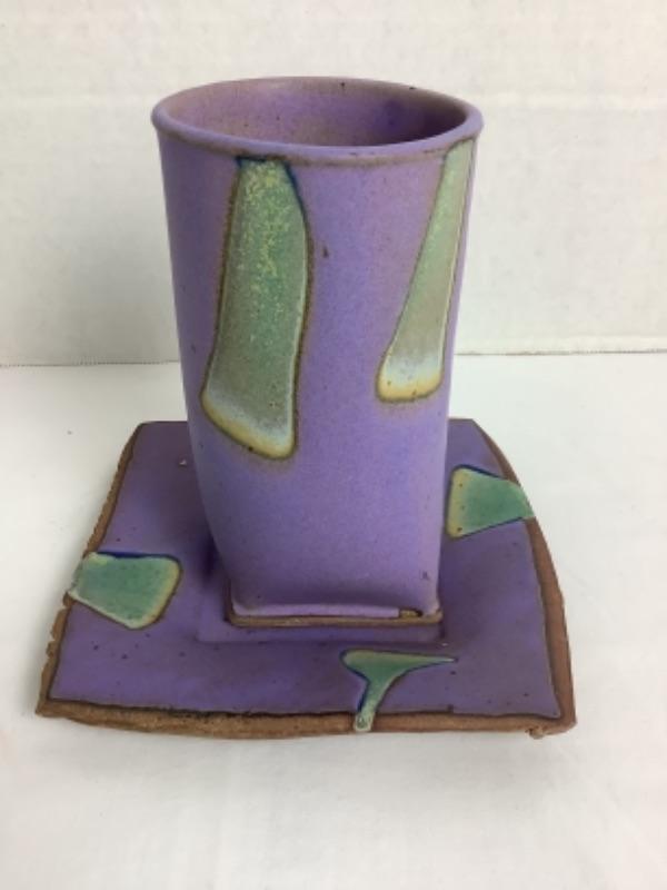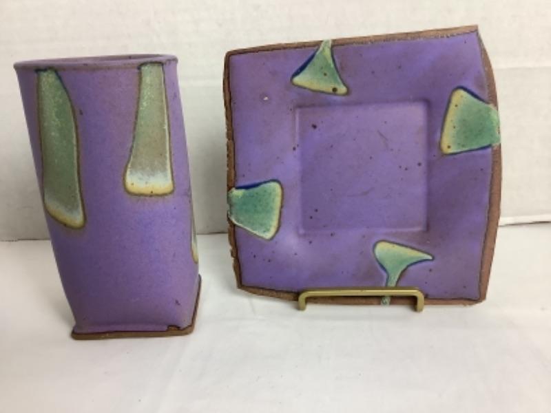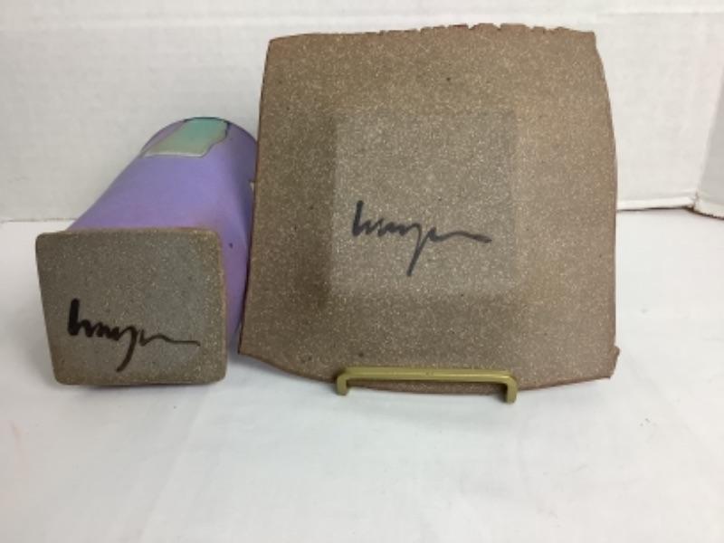 K - 118  Artisan Signed / Crafted Abstract Vase & Plate