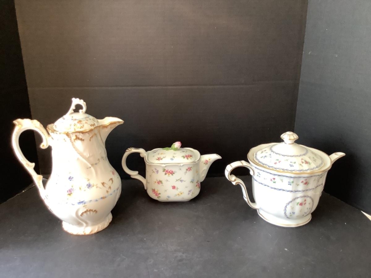 K. 1184. Limoges Tea Pot , Chocolate Pot & Victoria Takahashi Pot