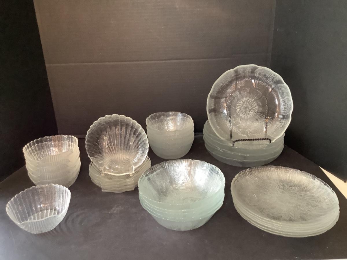 Lot of Clear Glass Bowls & Plates includes -