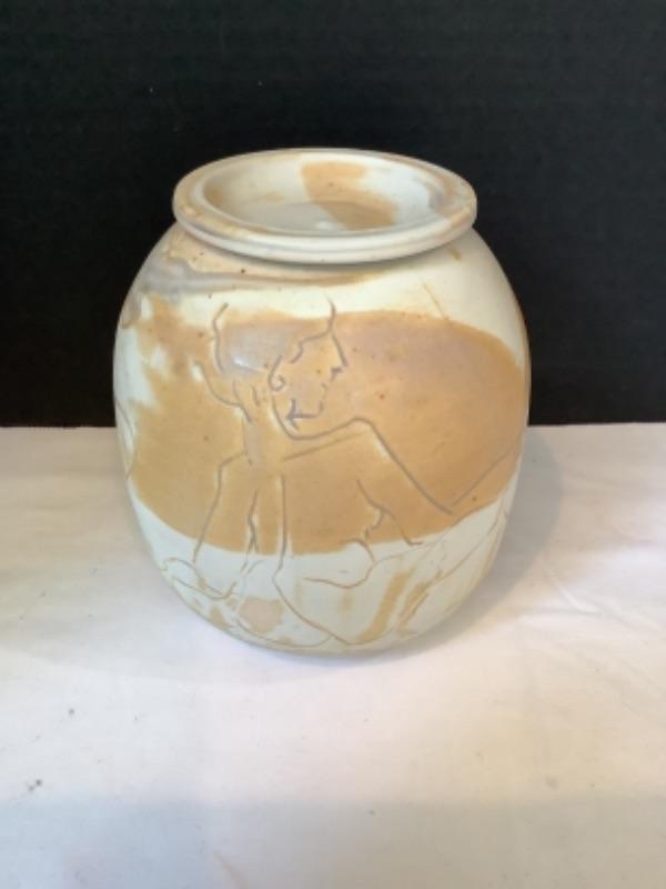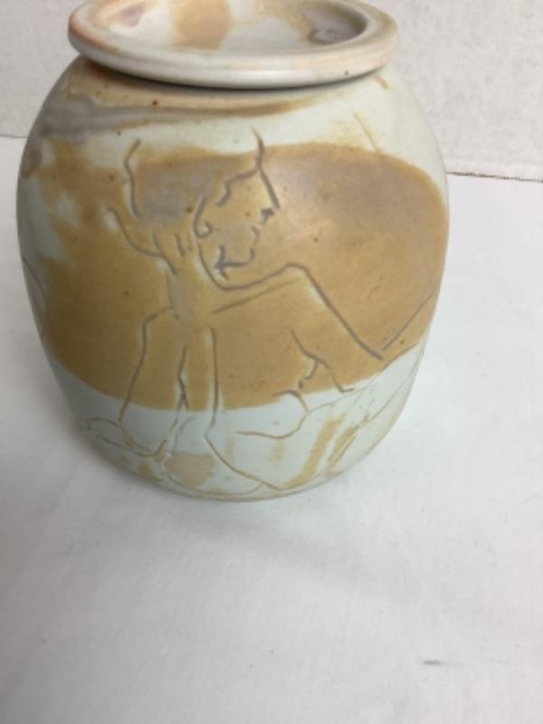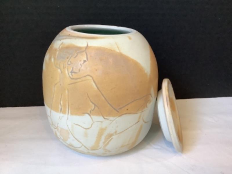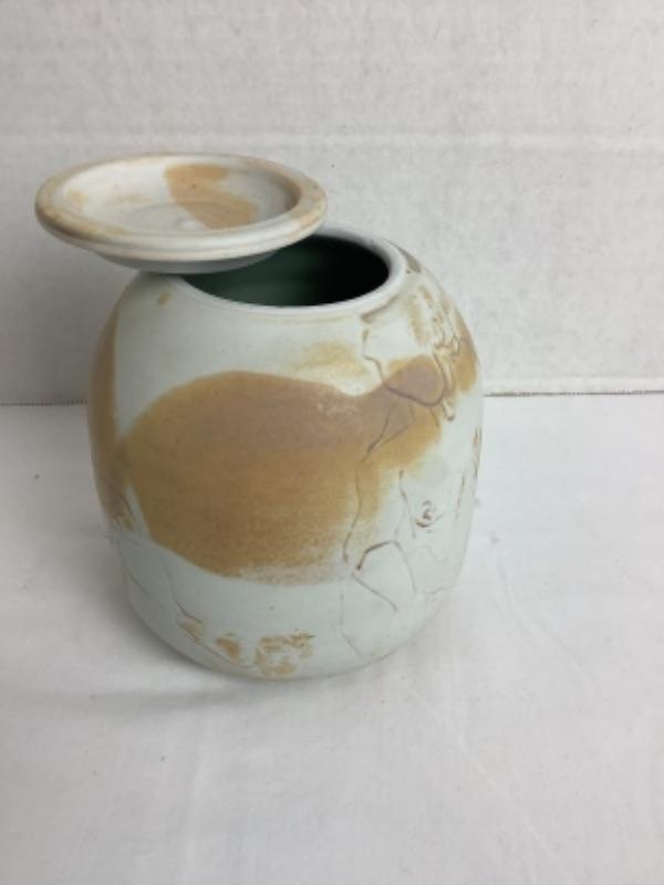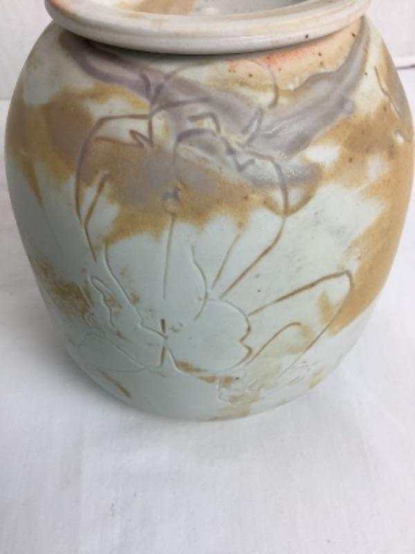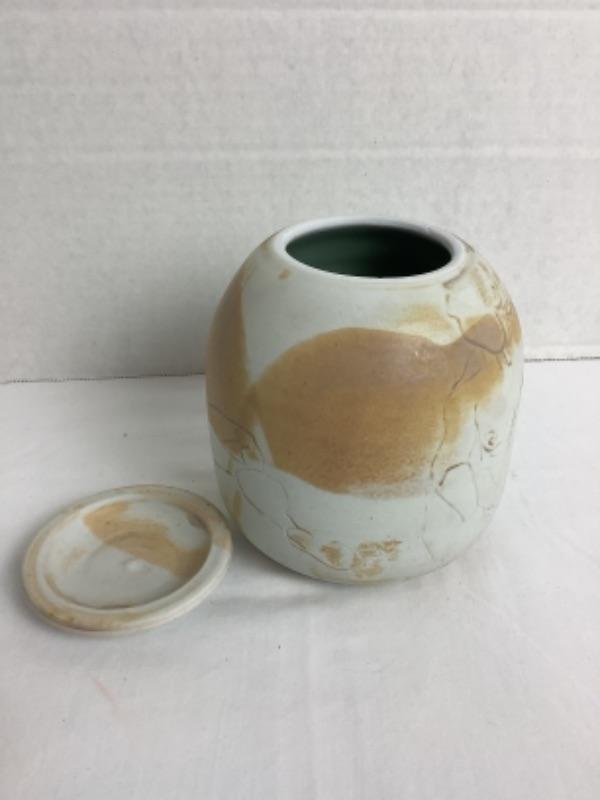 Artisan Signed Raku Pottery Jar with Lid-