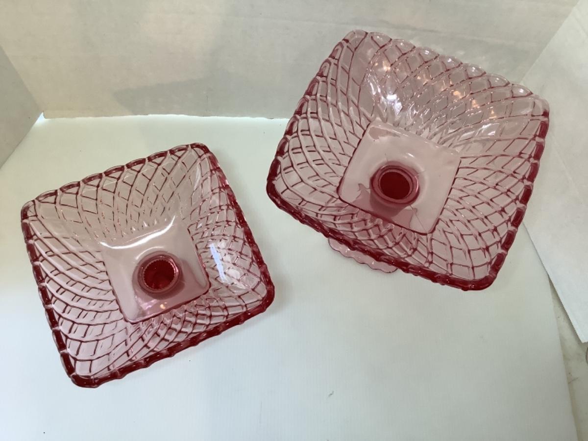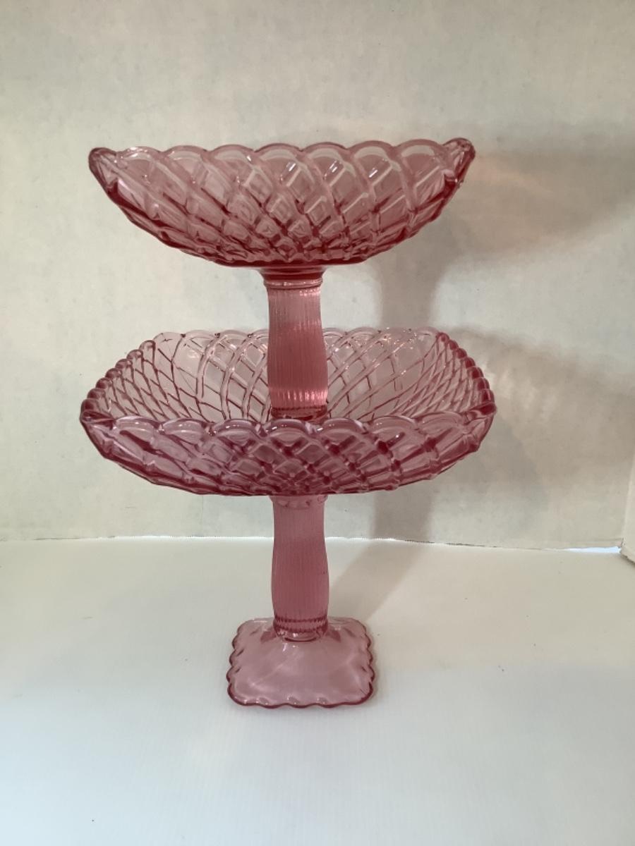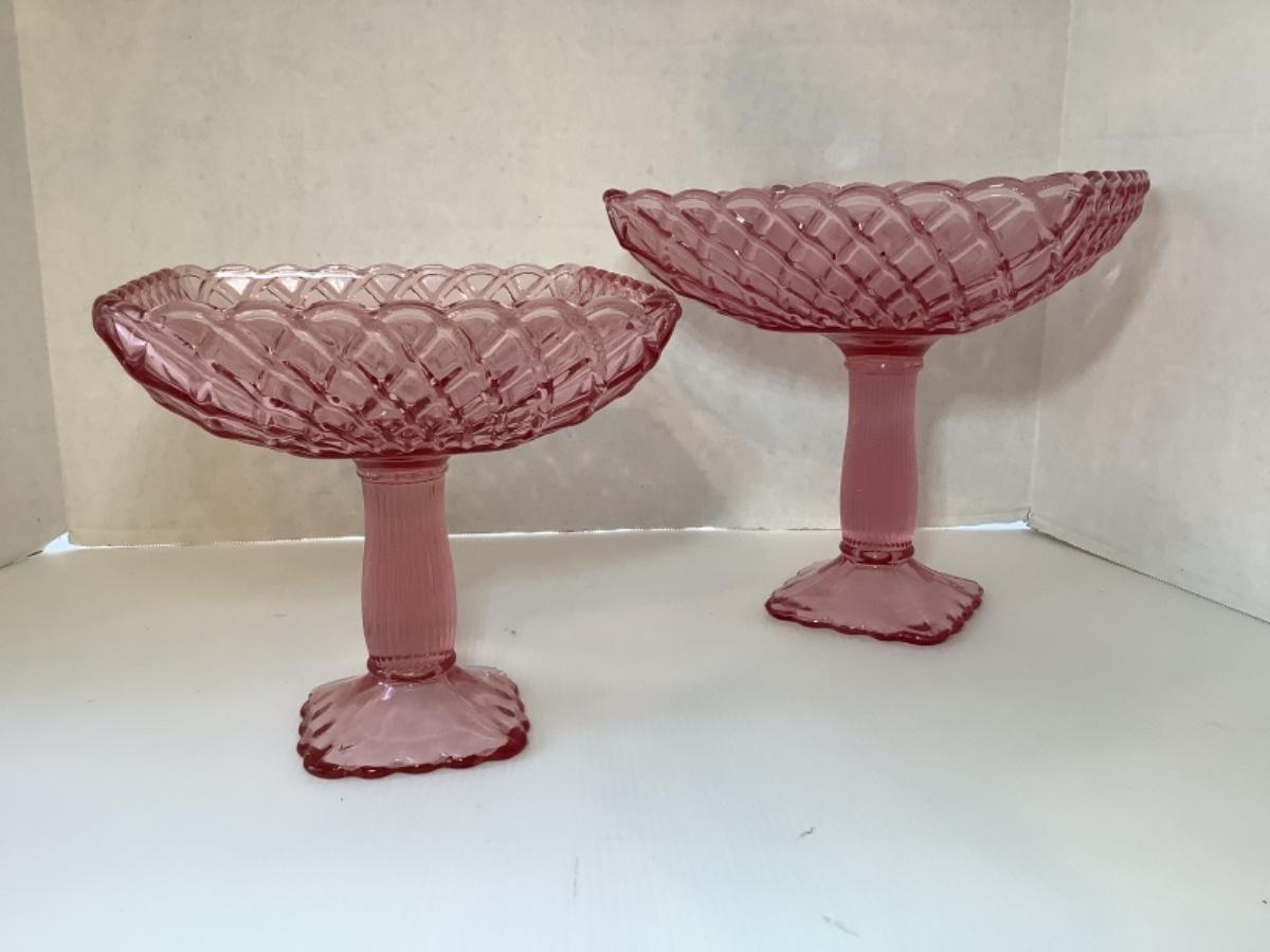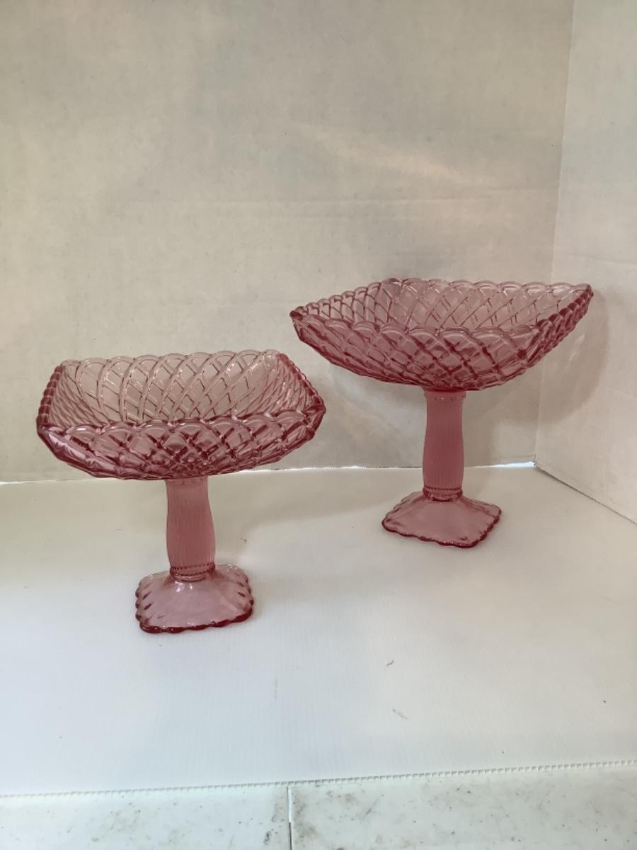 K. 1205. Vintage L. E. Smith Glass “ Trellis “ Pink Pedestal Candy Dish