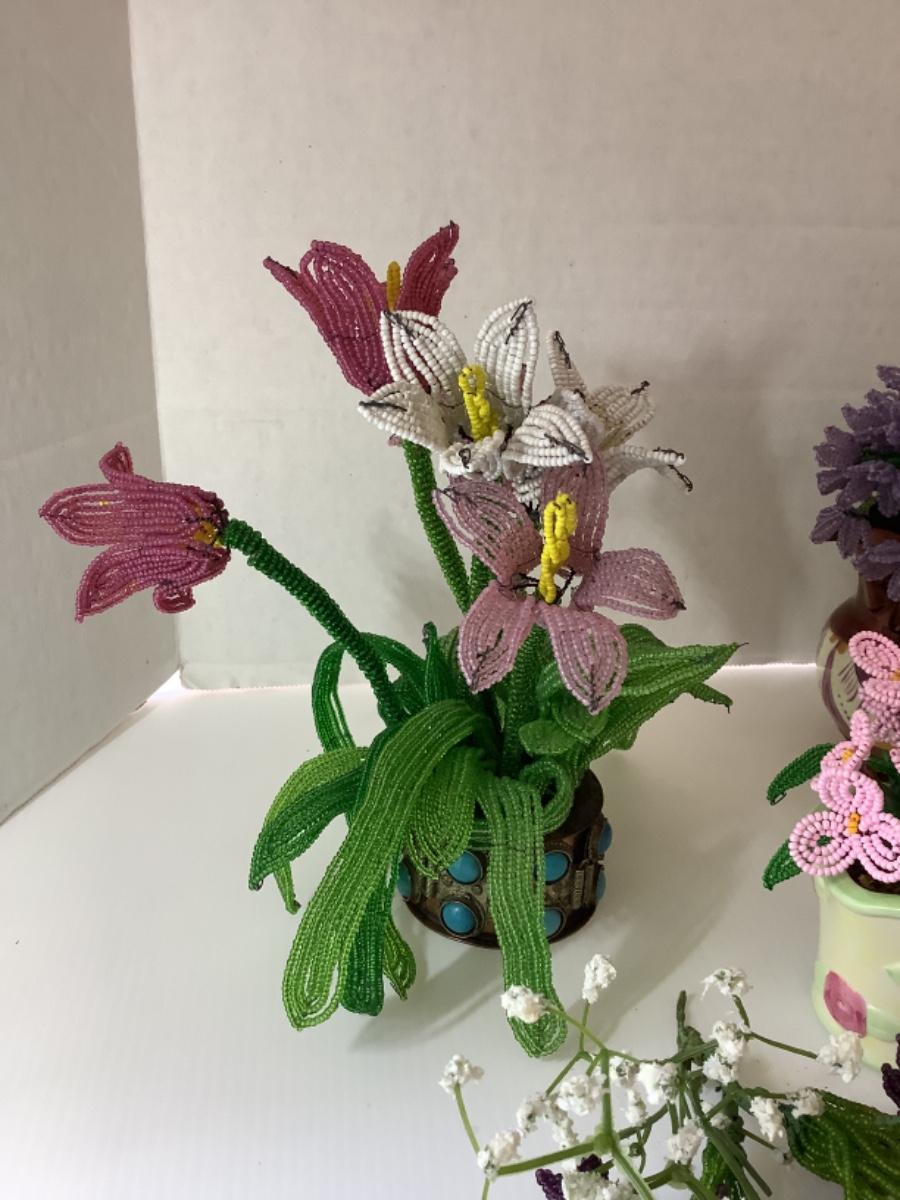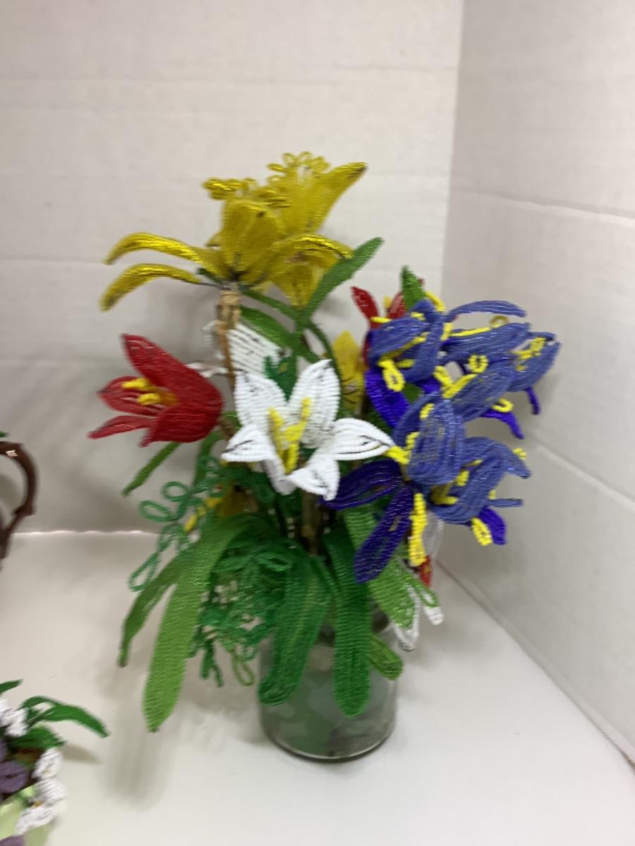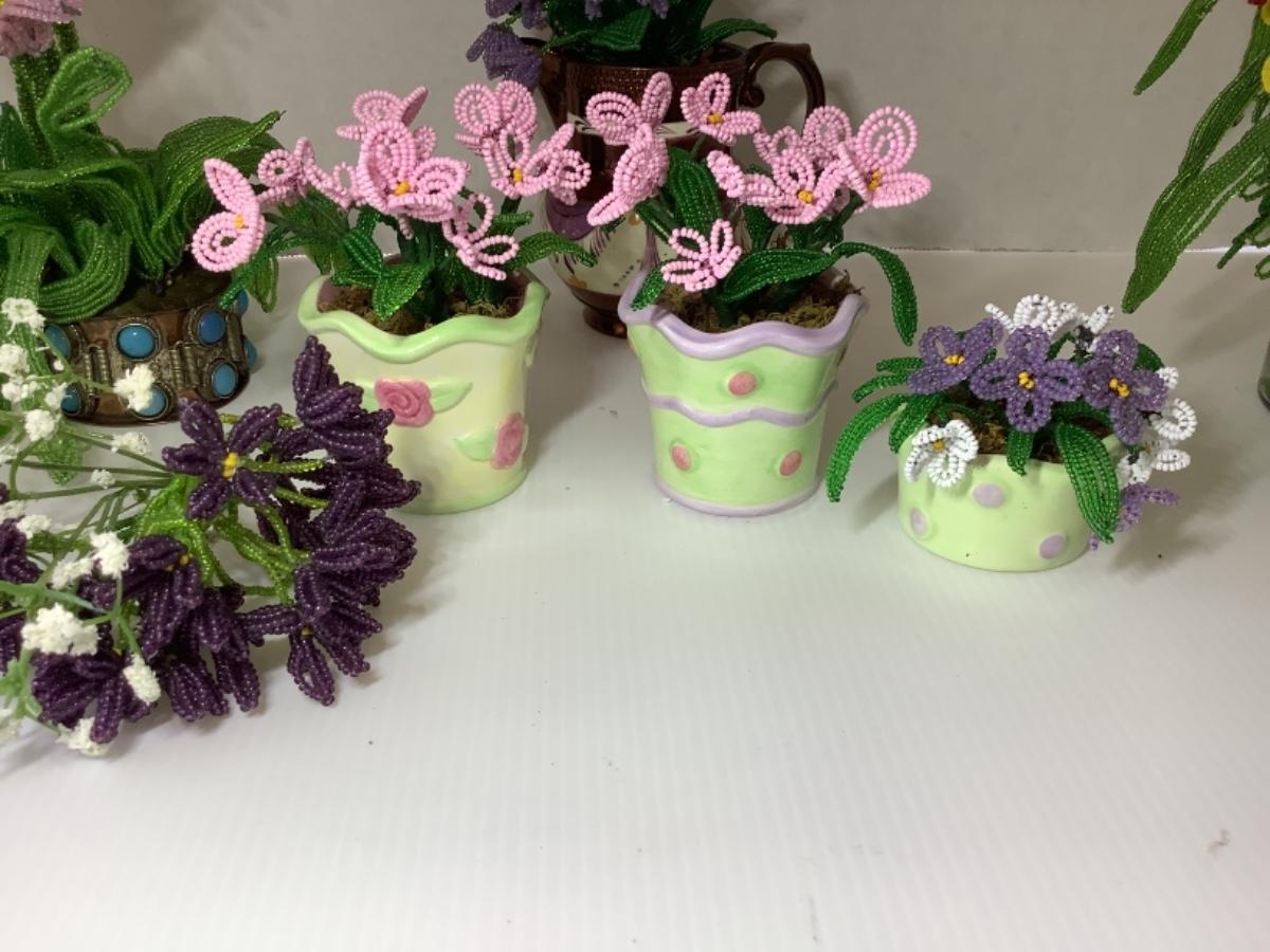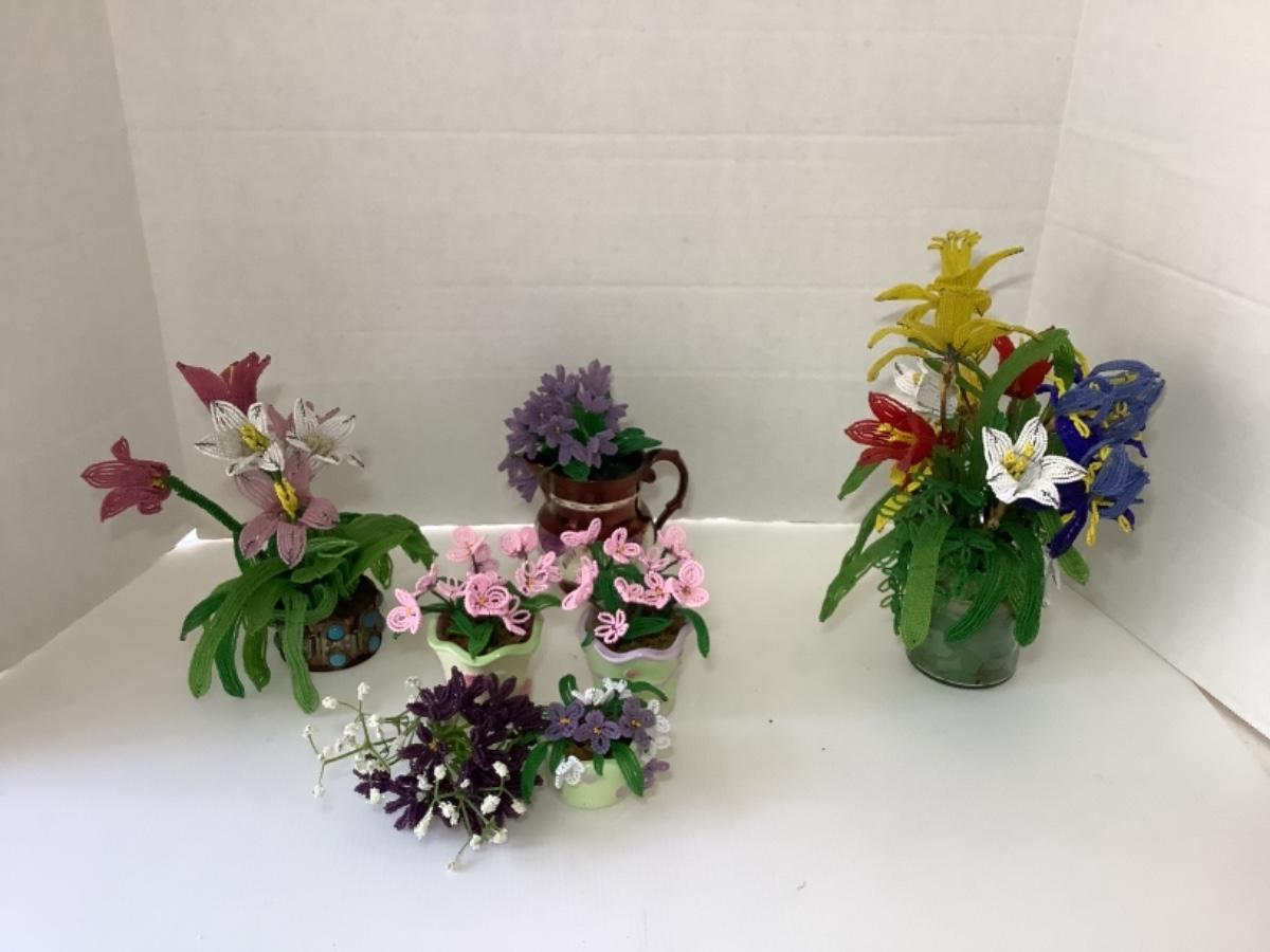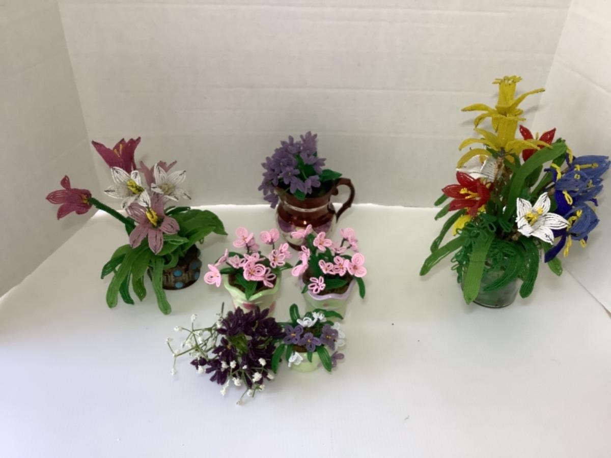 K. 1206 Lot of Vintage French Seed Bead Floral Arrangements