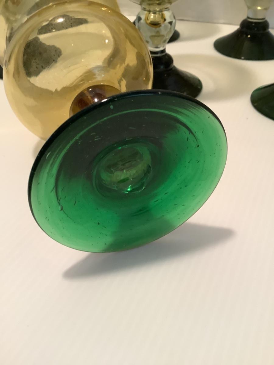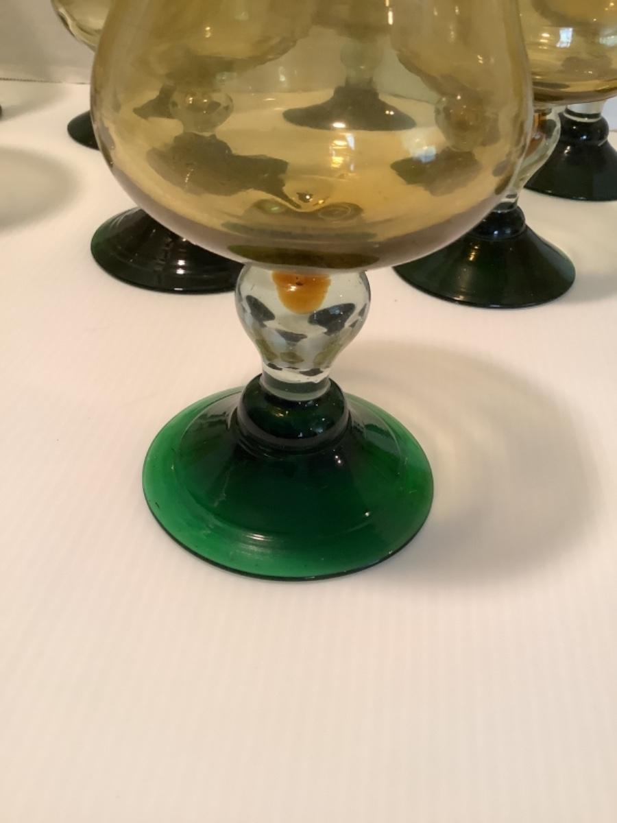 K. 1213 Set of Amber & Green Base Recycled Hand Blown Glass Goblets