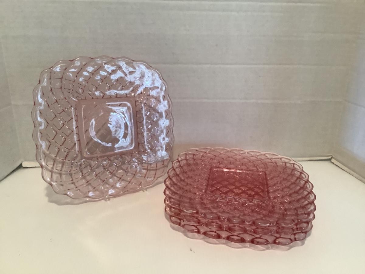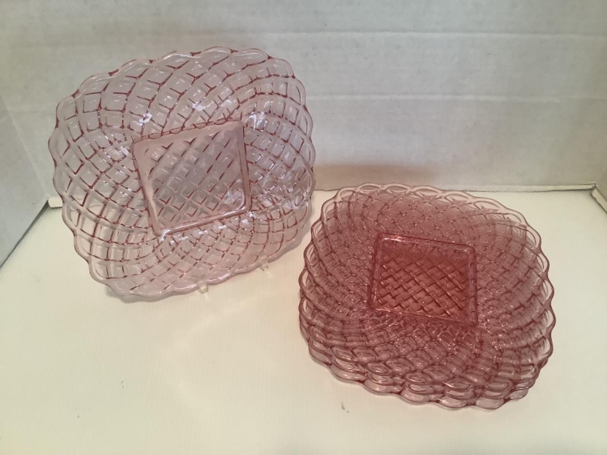 K 1220. Lot of Vintage L. E. Smith “ Trellis “ Plates, Pink