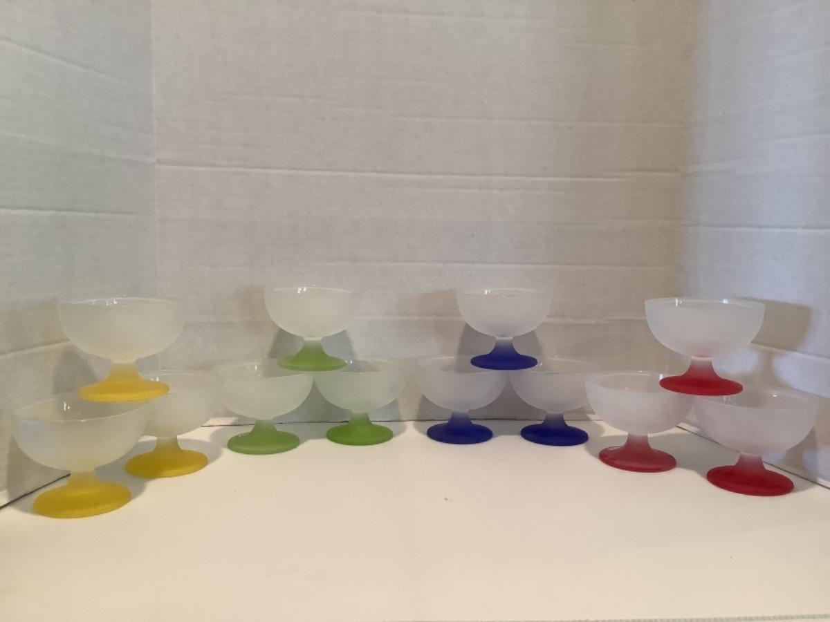 K. 1222. Set of Twelve Frosted Crisal Glass Sherbert Stemware made in Portugal