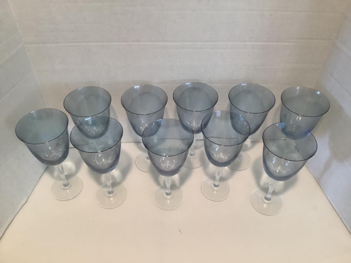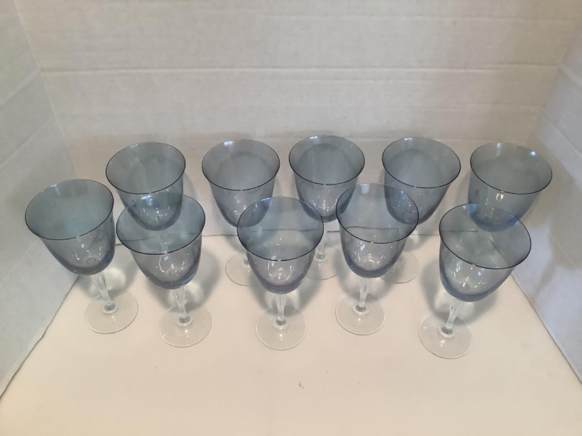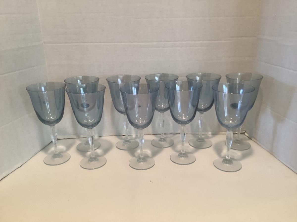 K. 1226 Lot of Ten Lt. Blue Glass Goblets