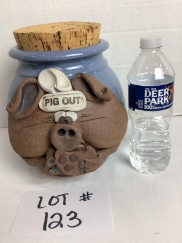 K - 123 Pottery, “ Pig Out “ Pig Cookie Jar