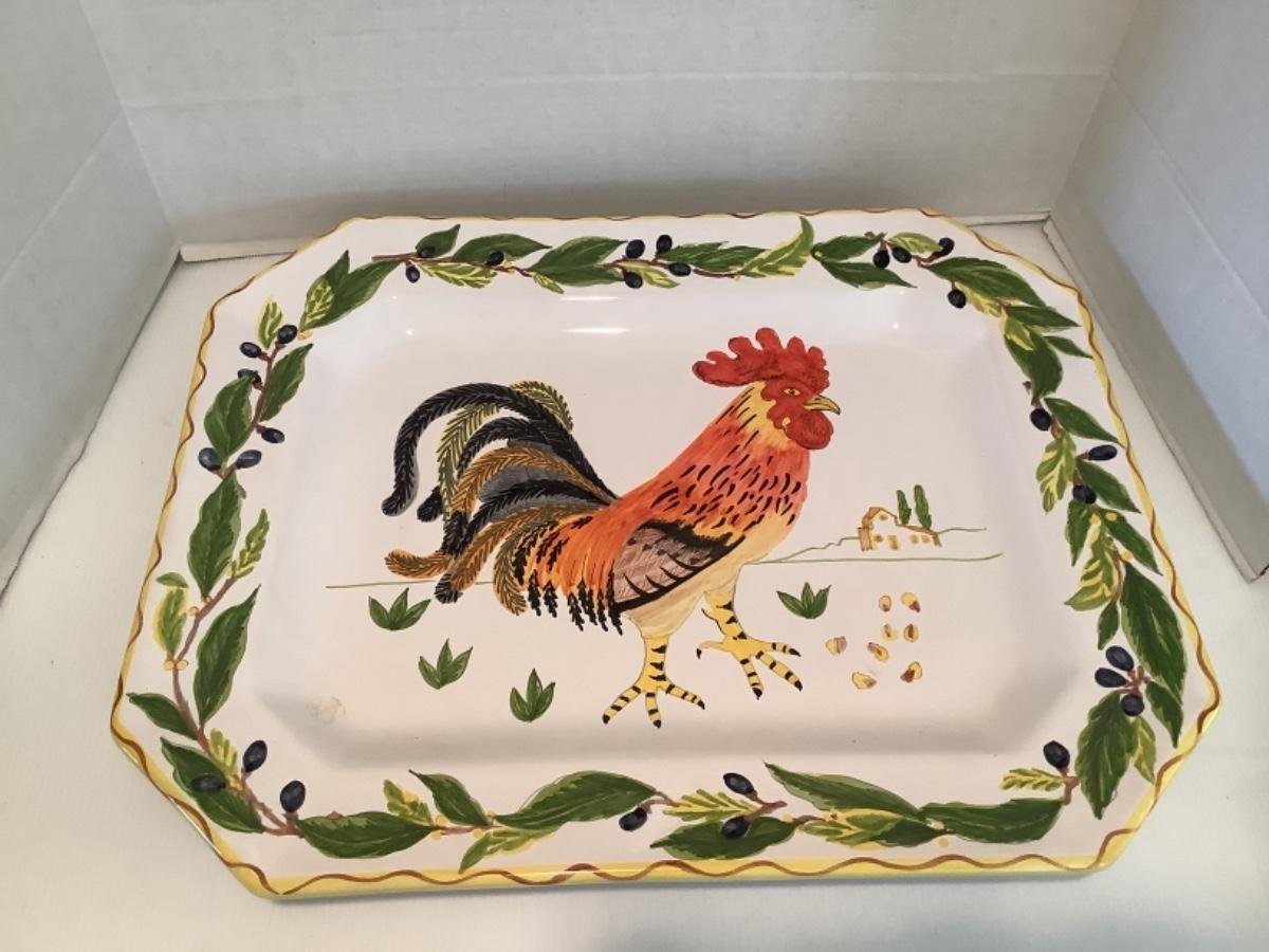 Large Rooster Platter, Majilly, Hand Painted in Italy