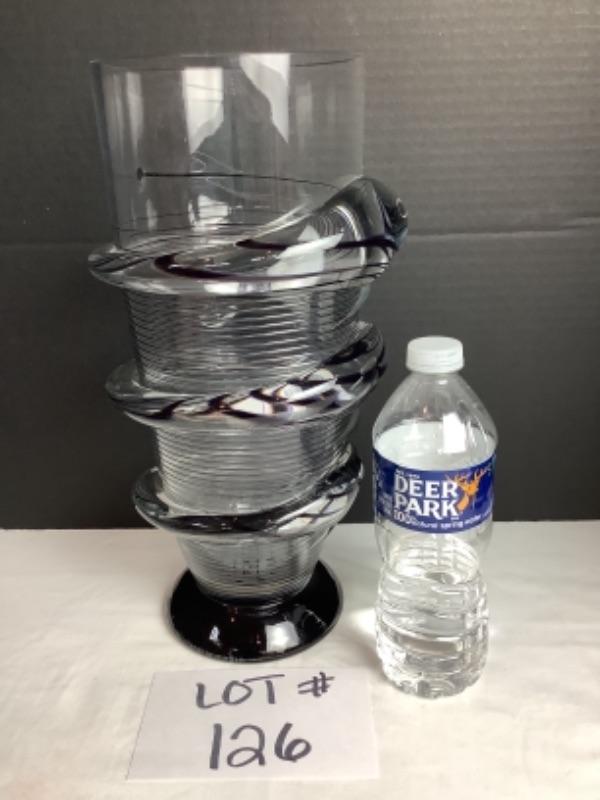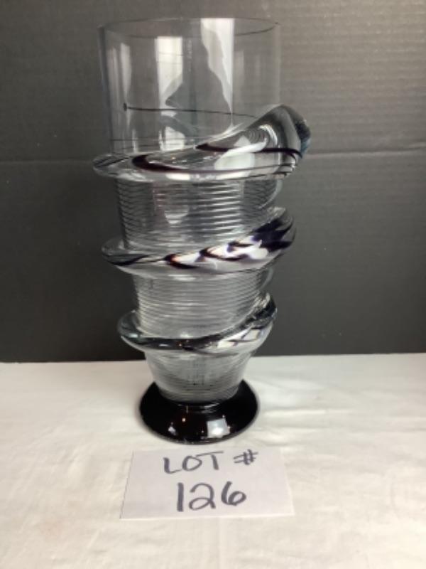 K - 126 Created by Chip Scarborough, Beautiful Clear Glass Vase with Black Swirled Throughout