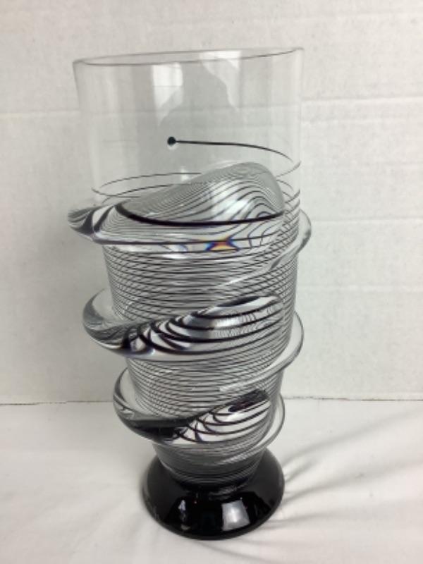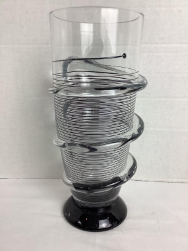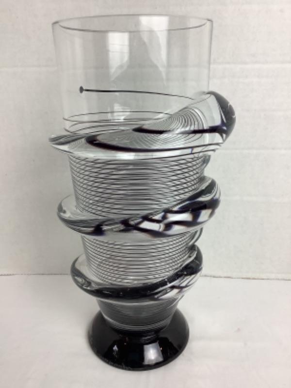Beautiful Clear Glass Vase with Black Swirled Throughout by Chip Scarborough -