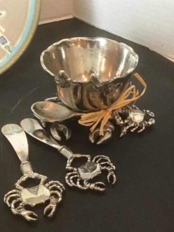 Pewter Spread Bowl with Spreaders ( Crab Themed )