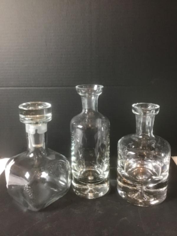 K - 1318 Pair of Hand Blown Glass Decanters & 1  Glass Decanter