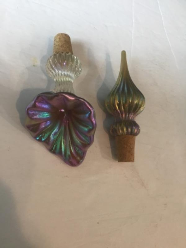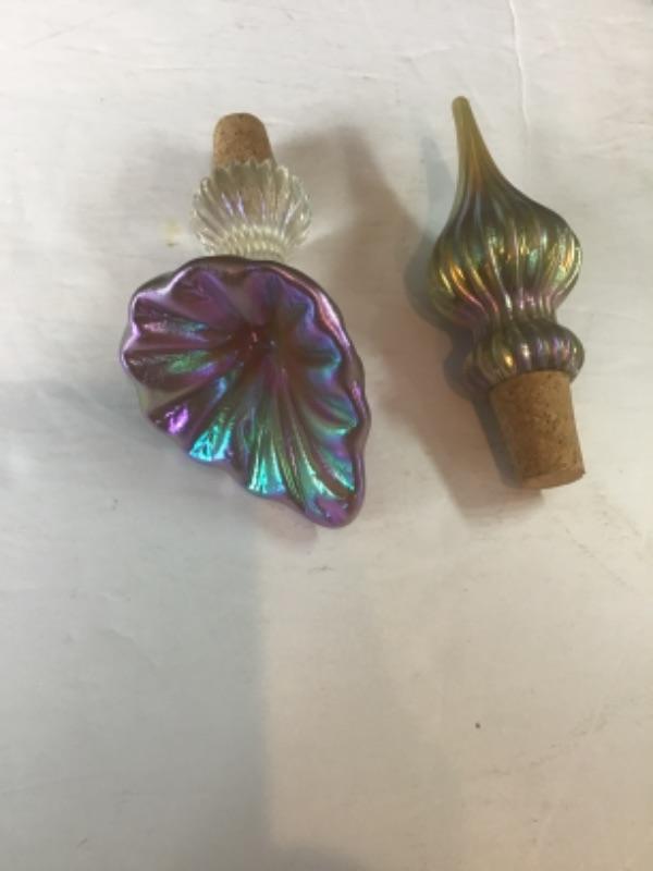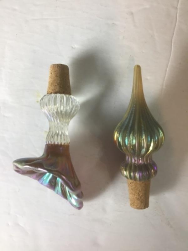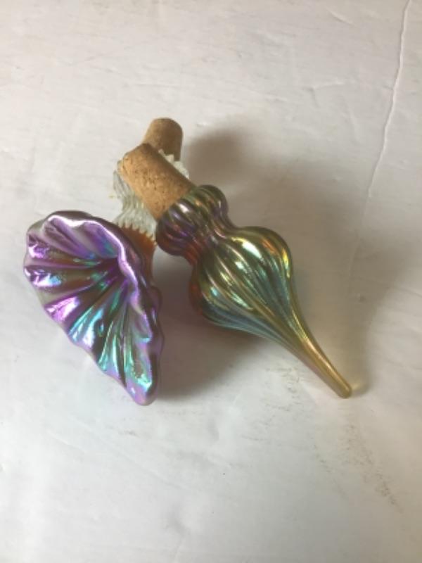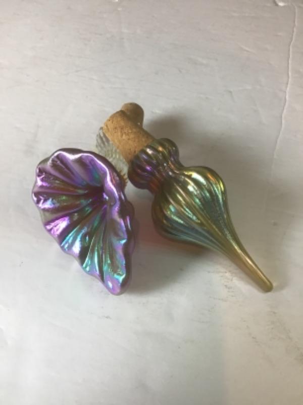 K - 1319 Pair of Beautiful Artisan Iridescent Art Glass Bottle Stoppers