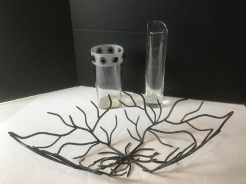 K - 1322 Pair of Unique Vases & Wire Basket Lot