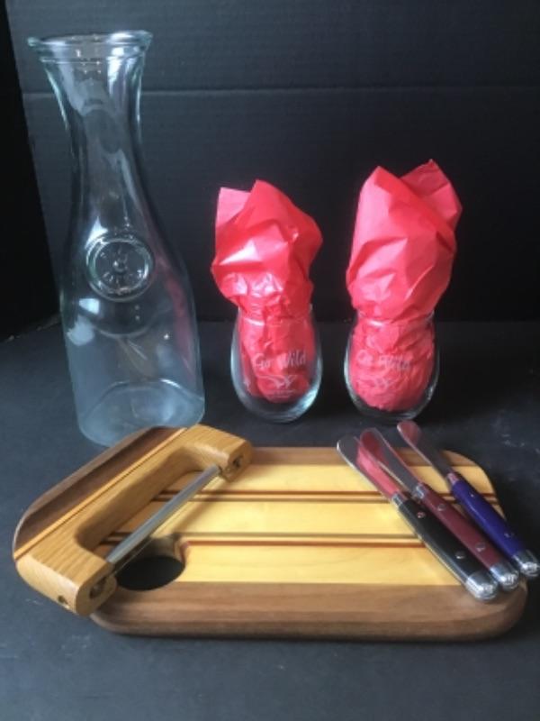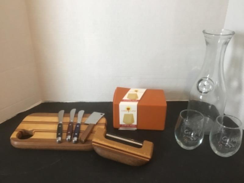 K -1324. Artisan Crafted Cheese Boards / Cheese Vault / Wine Glasses / Carafe