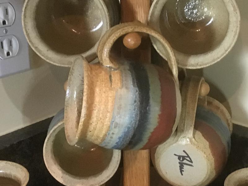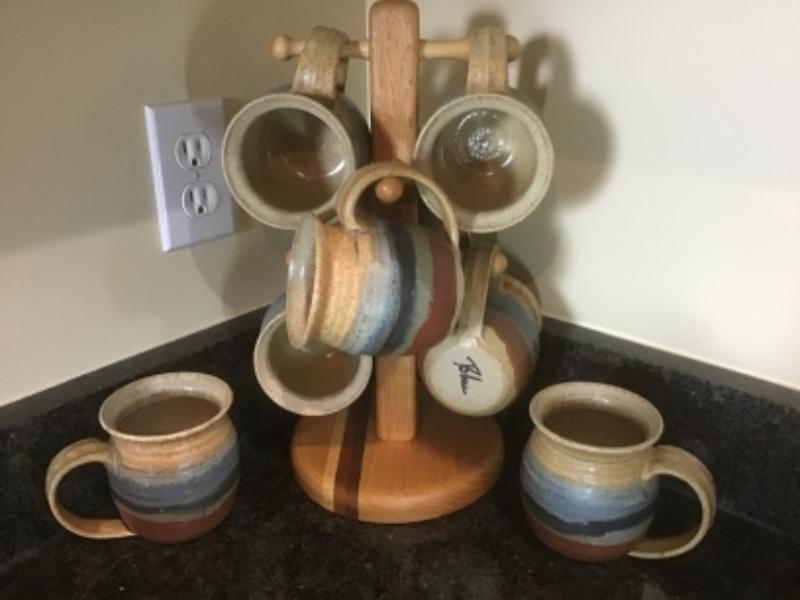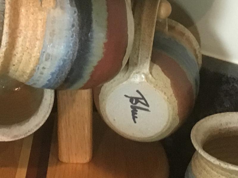 Blue Signed Pottery Mug Set ( 8 )
