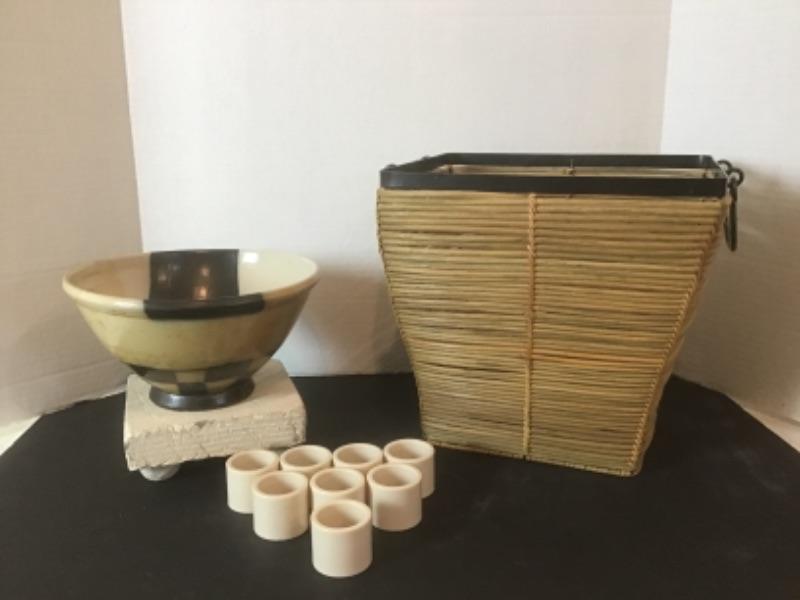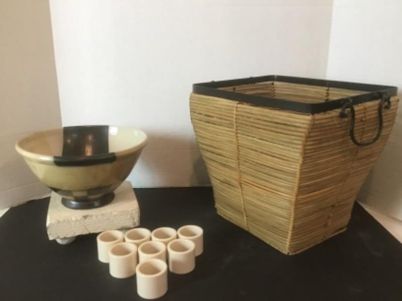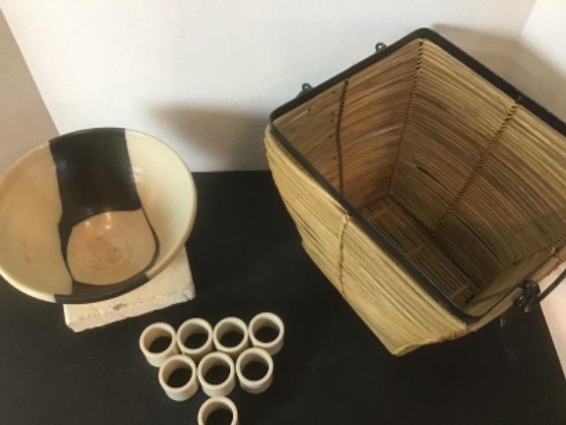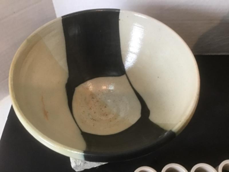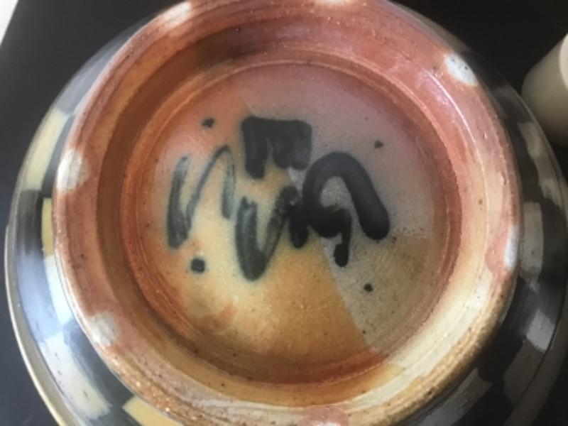 K - 1334. Signed/Stamped Pottery Bowl with Base /Basket