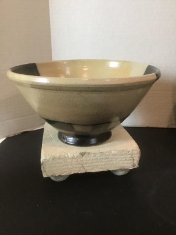 Signed / Stamped Pottery Bowl on Base - 9.25” Round x 5” Tall