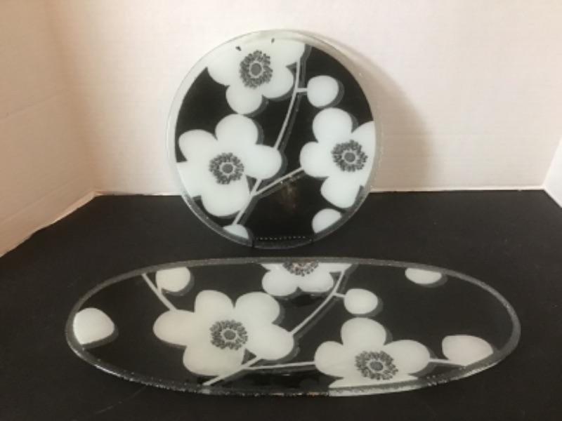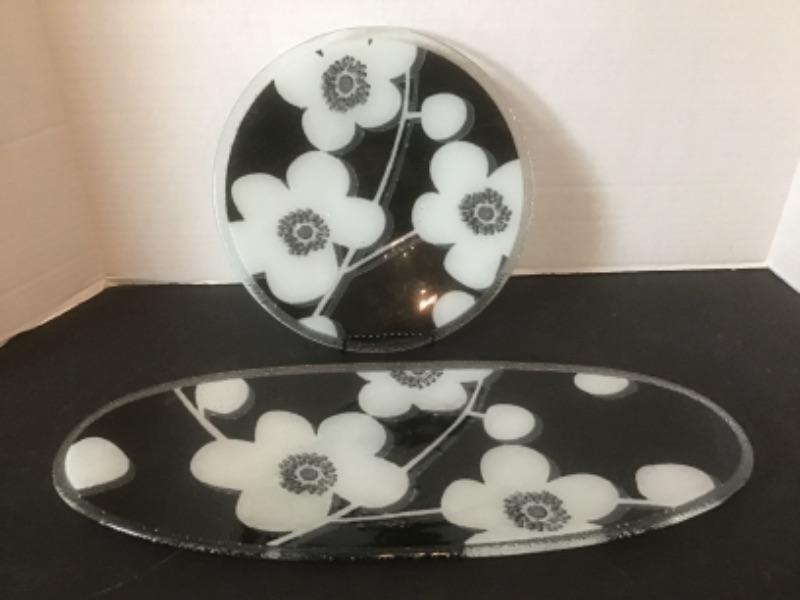 Beautiful Black & White Fused Art Glass Platter / Plate
