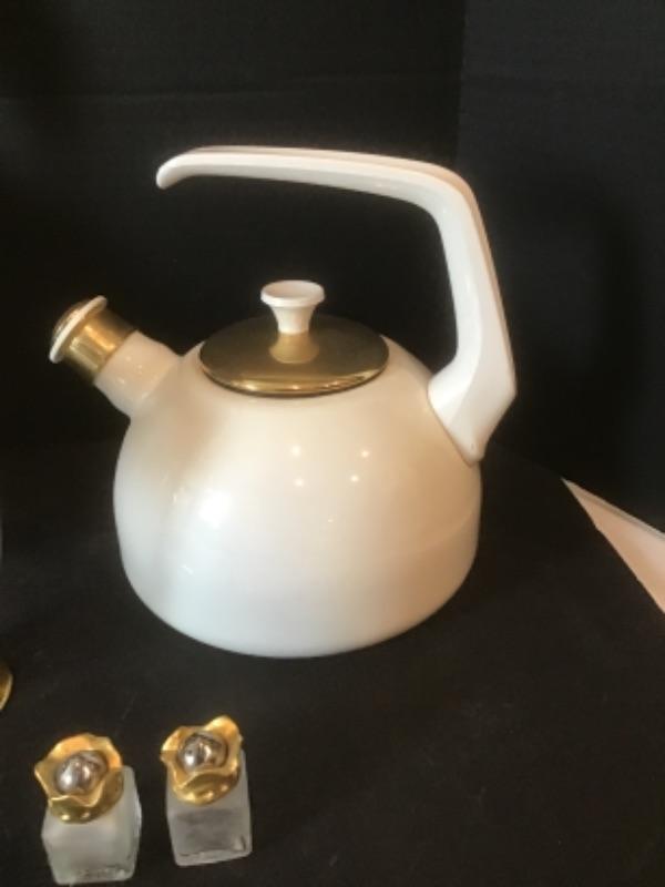 Vitret Gourmet White with Gold Pava Tea Kettle 2.5 Qt