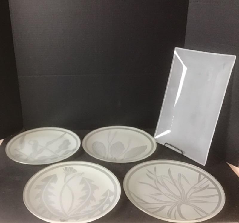 K - 1351 Riverside Signed Frosted Plate/Platter Lot