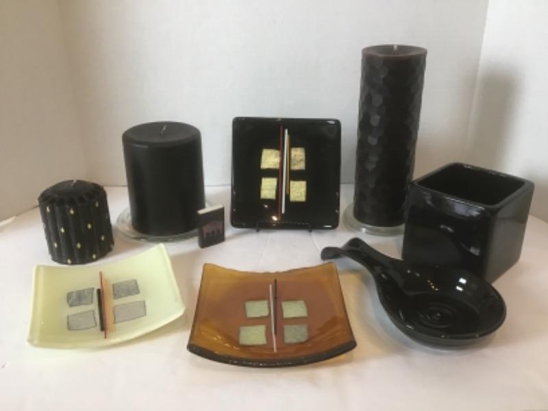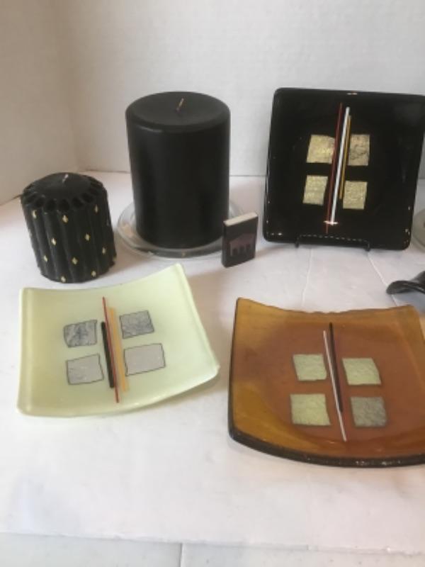 K - 1366. Signed by JT Hand Blown Collage Glass Plates/ Designer Candles