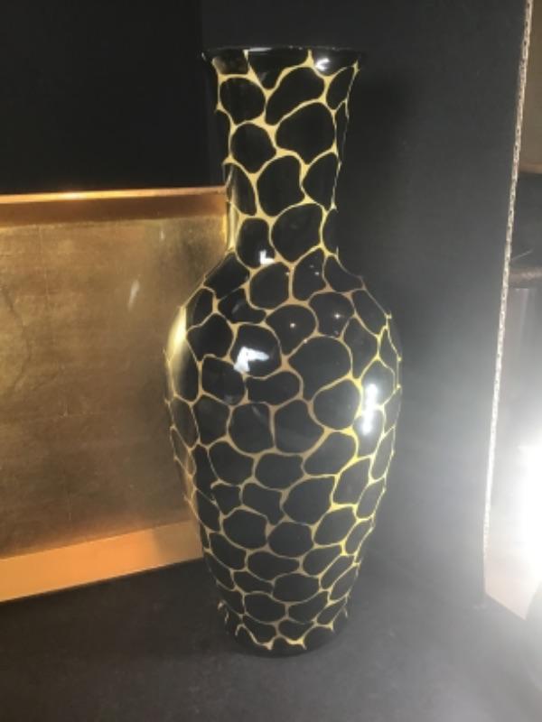 Black & Gold Laura Gates Vase - 14” Tall x 6” @ widest Point