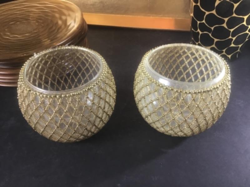 2 Gold Mesh Candle Holders - 3.5” Tall x 3.5” Wide
