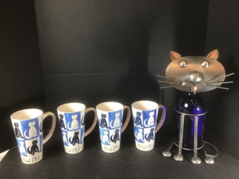 Scrap Metal Cat Sculpture with Bottle - 13” Tall with bottle x 6.75” Wide