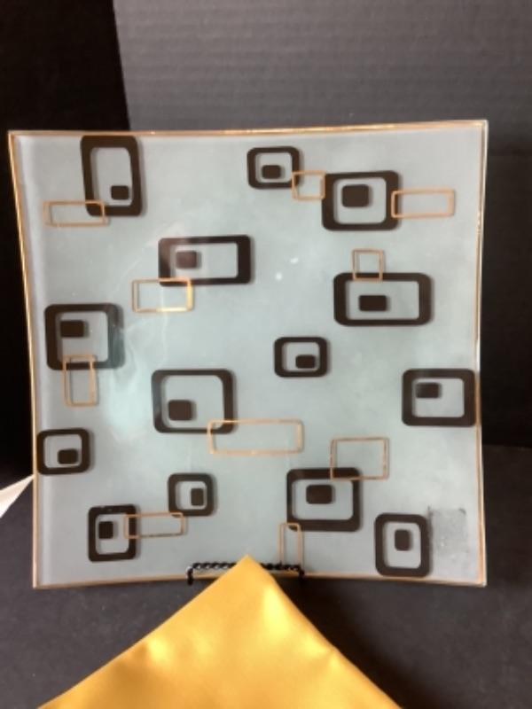 one geometric glass platter - 11” Square