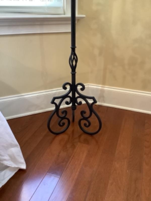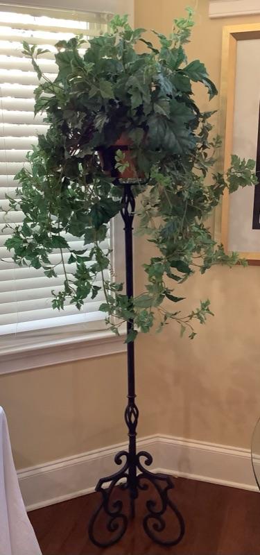 Black Wrought Iron Plant Stand - measures 59.75” stand only, with plant measures 75” x at the base measures 14.25”