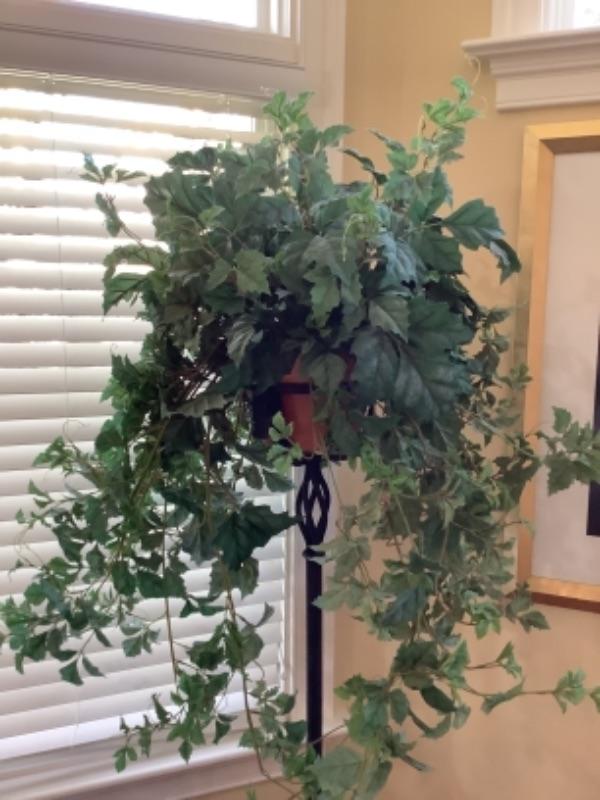 K - 1416. Black Wright Iron Plant Stand / Faux Plant