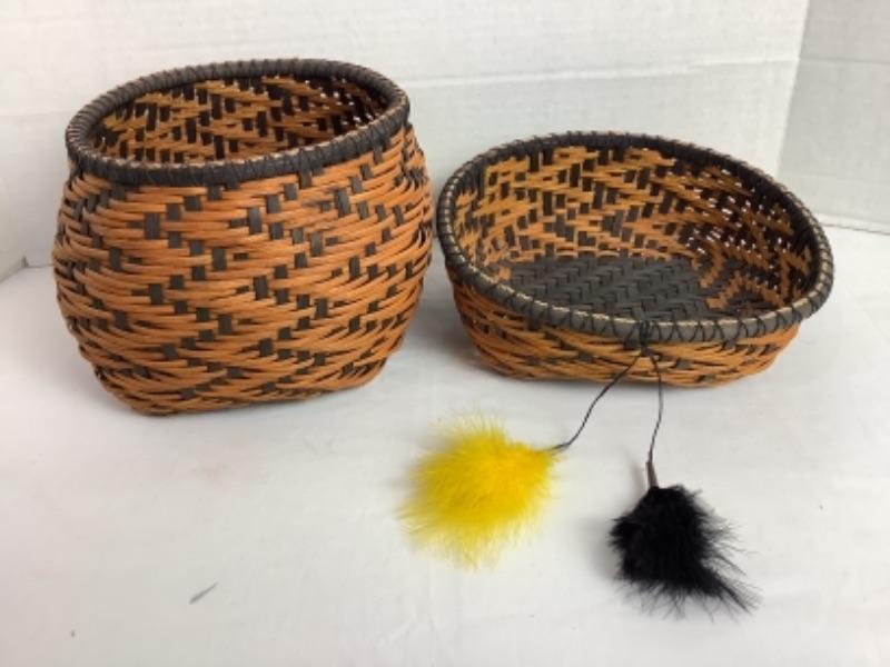 K - 142  Pair of Signed / Matching Hand Crafted Woven Baskets