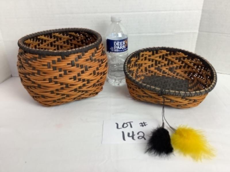K - 142 Pair of Signed / Matching Hand Crafted Woven Baskets