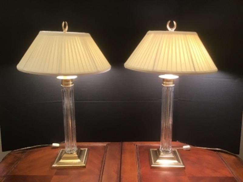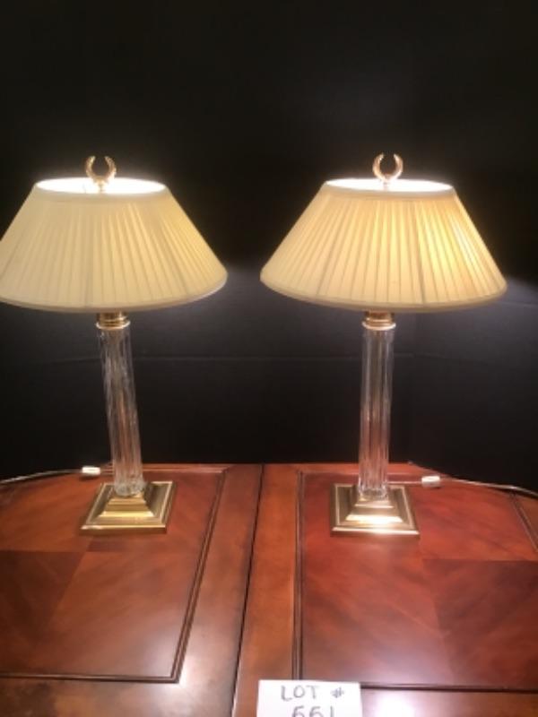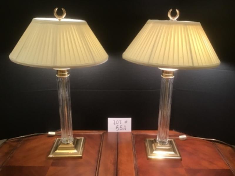 K - 552 A Pair of Brass & Glass Pillar Lamps