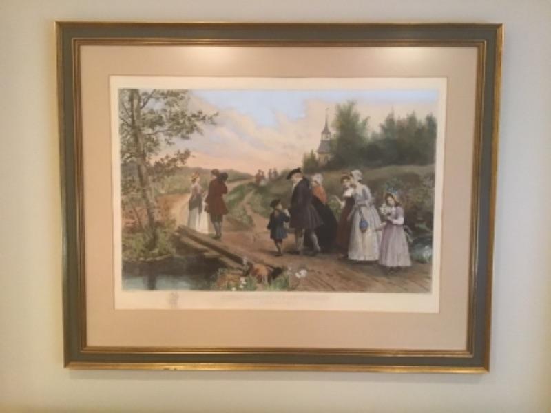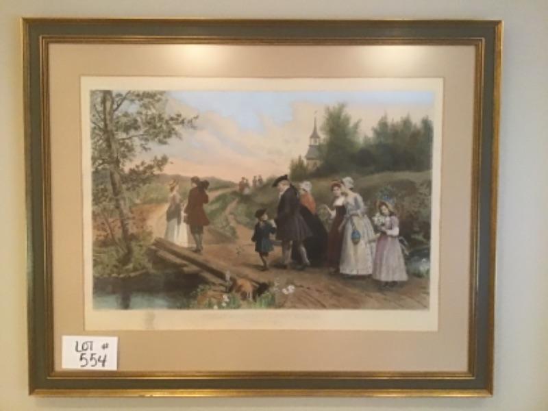K - 554 ARTWORK by Jas. S. King Print Signed  “ Sunday Morning in. Sleepy Hollow “