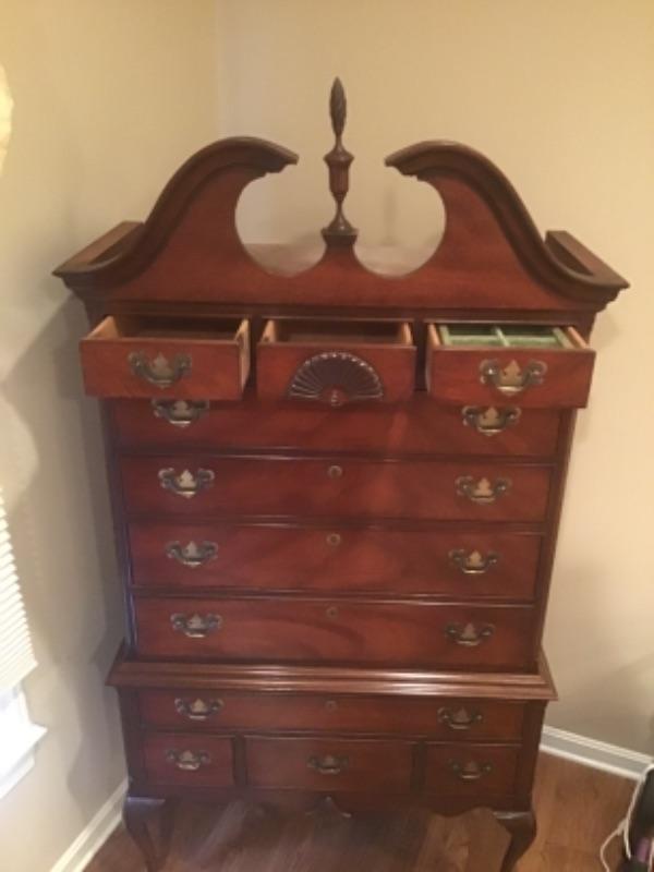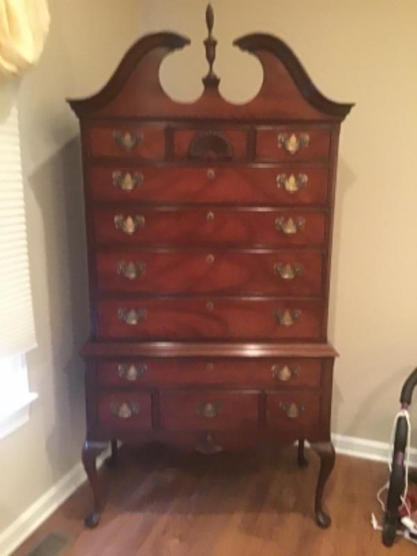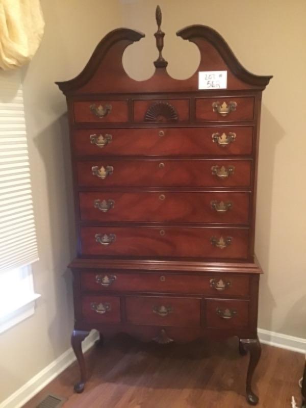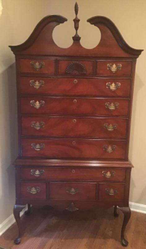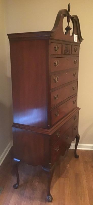 K - 562 Chippendale Style Highboy Dresser with Bonnet