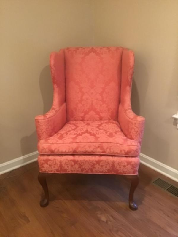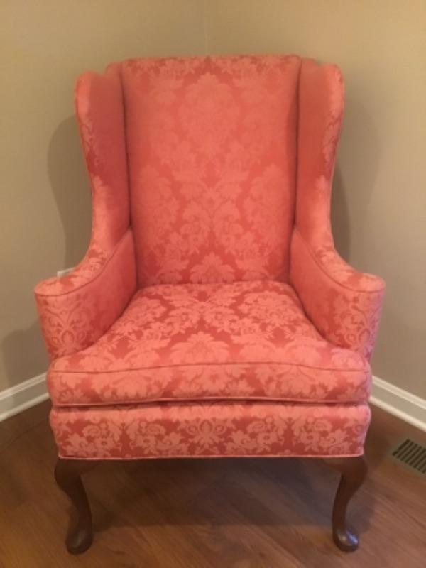 Damasks Wingback Upholstered Chair - measures 30.5” Wide x 43” Tall x 18.5” Seat Depth x 21” Floor to Seat