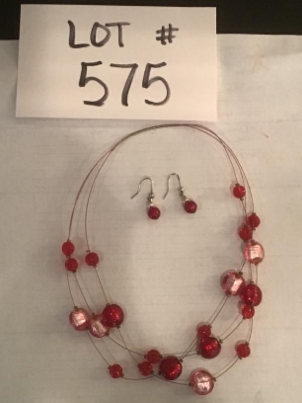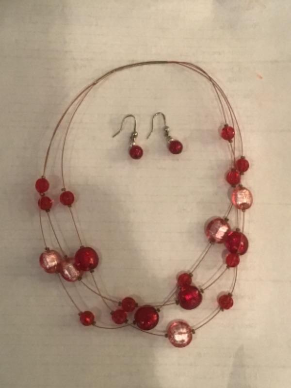 Beautiful Set of Earrings & Necklace made of Red Glass