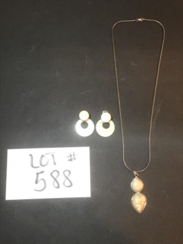 K - 588 Necklace with Stone Pendant & Earrings