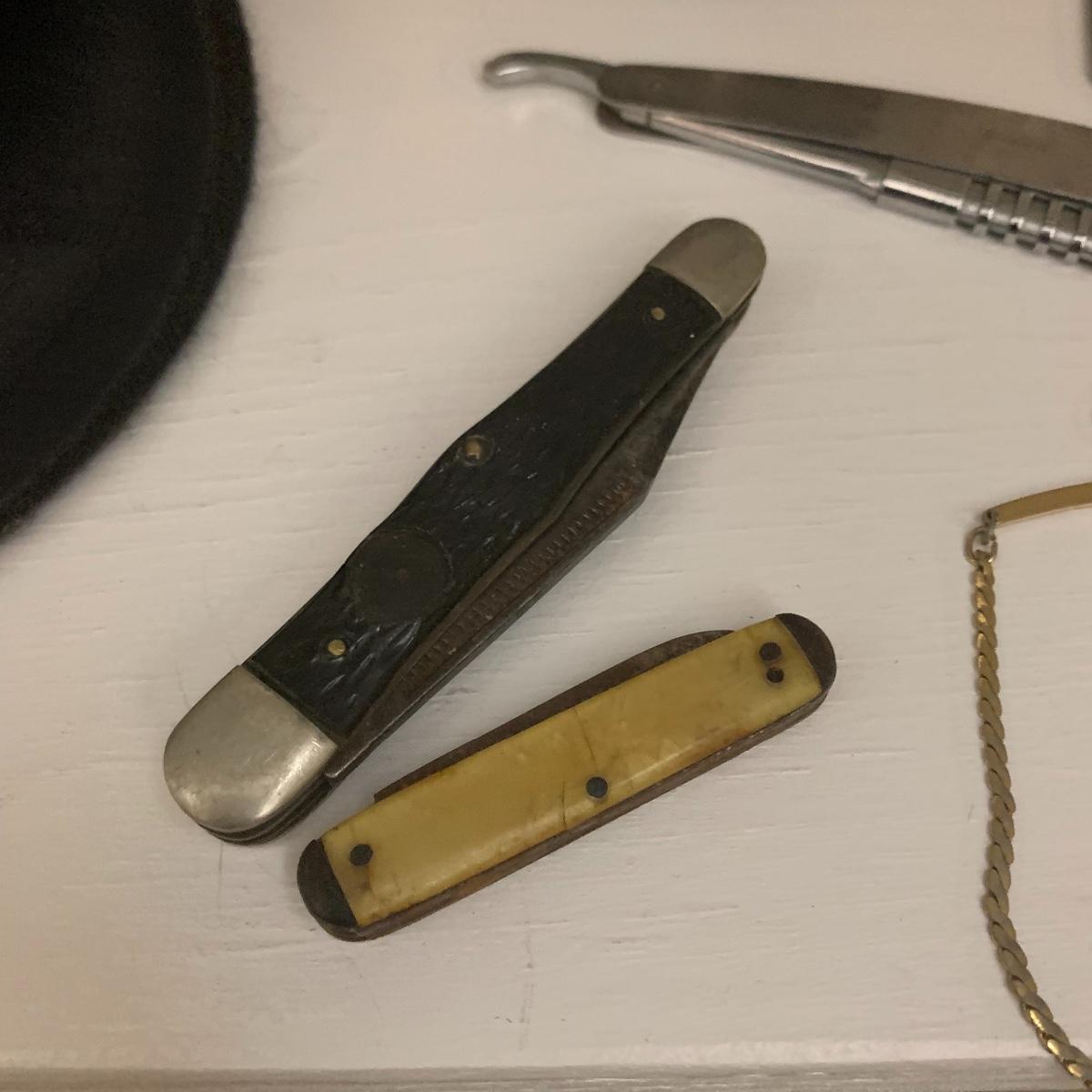 Lot 313 - Vintage Cologne, Pocket Knifes, & Greek Fishing Hat