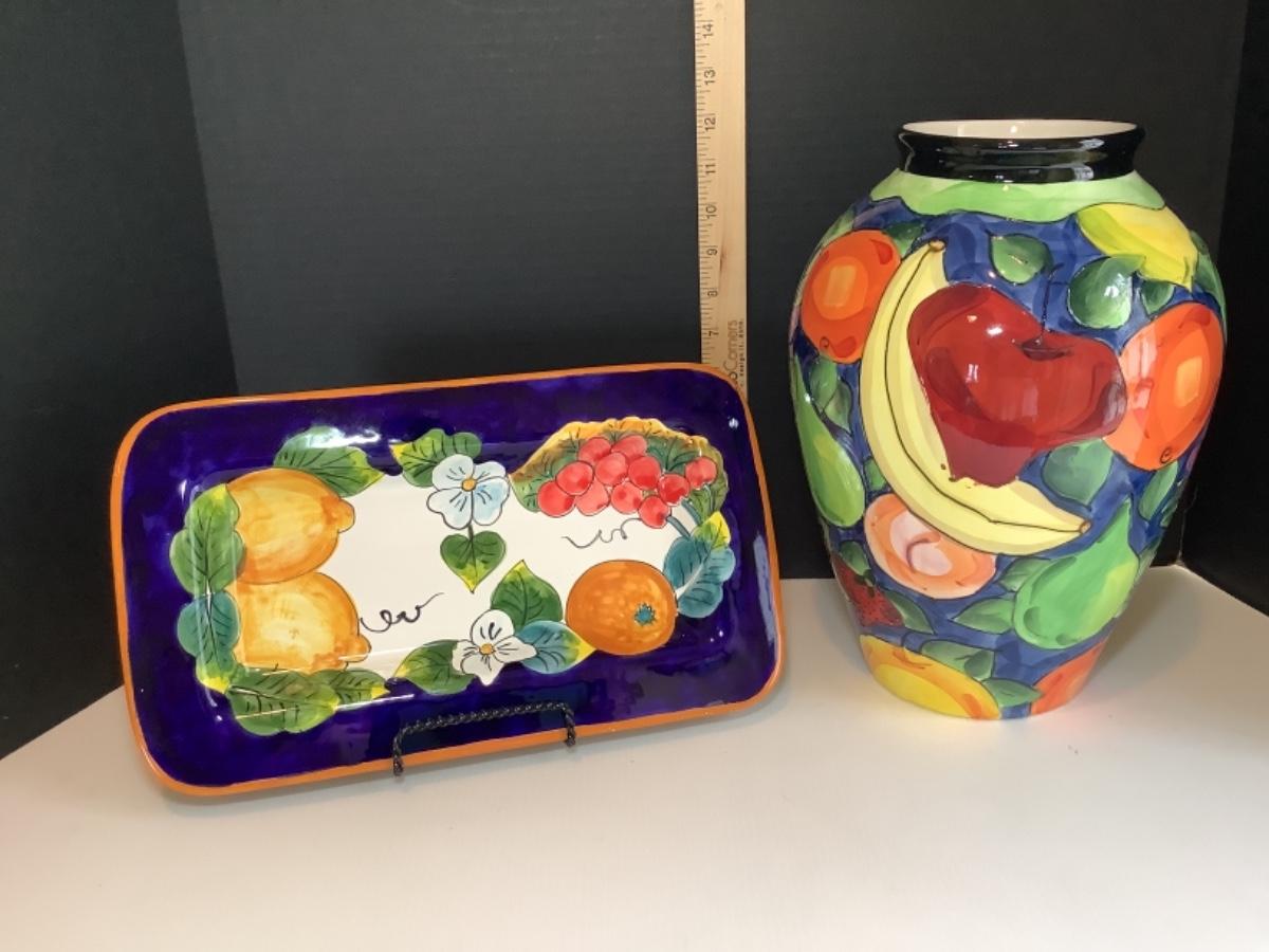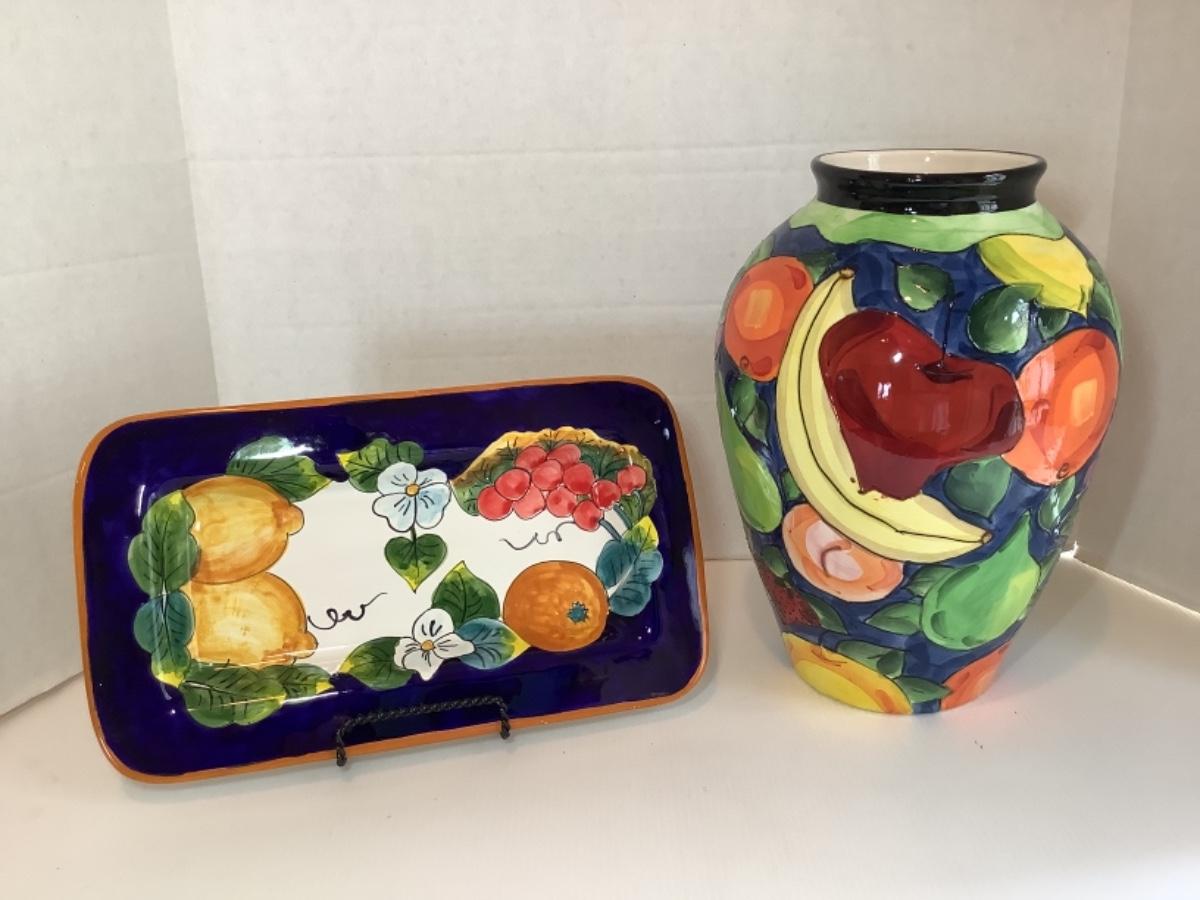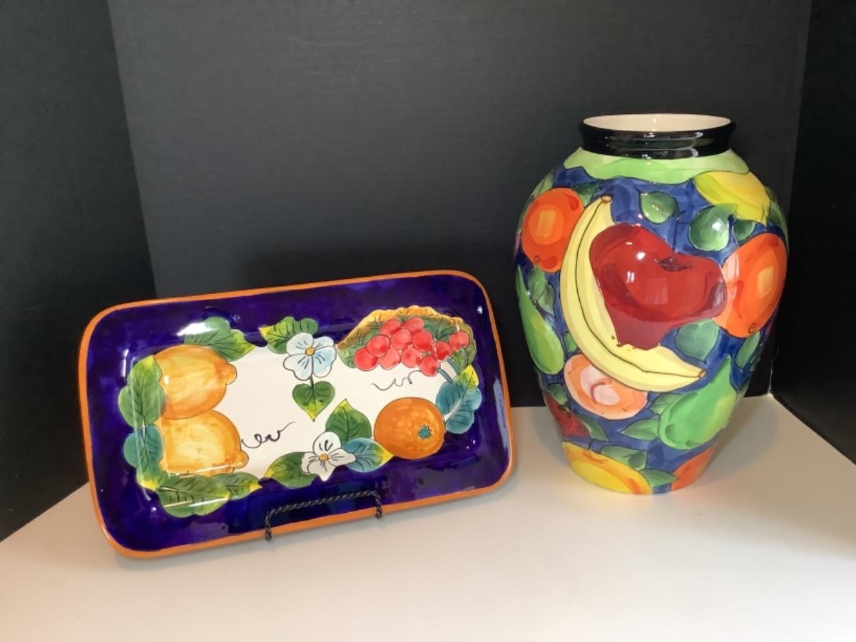 K. 850. Ceramic Italian Fruit Vase & Platter