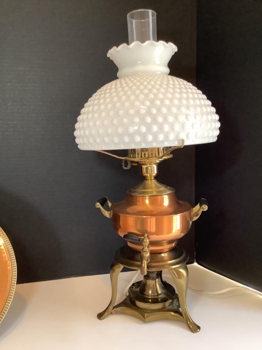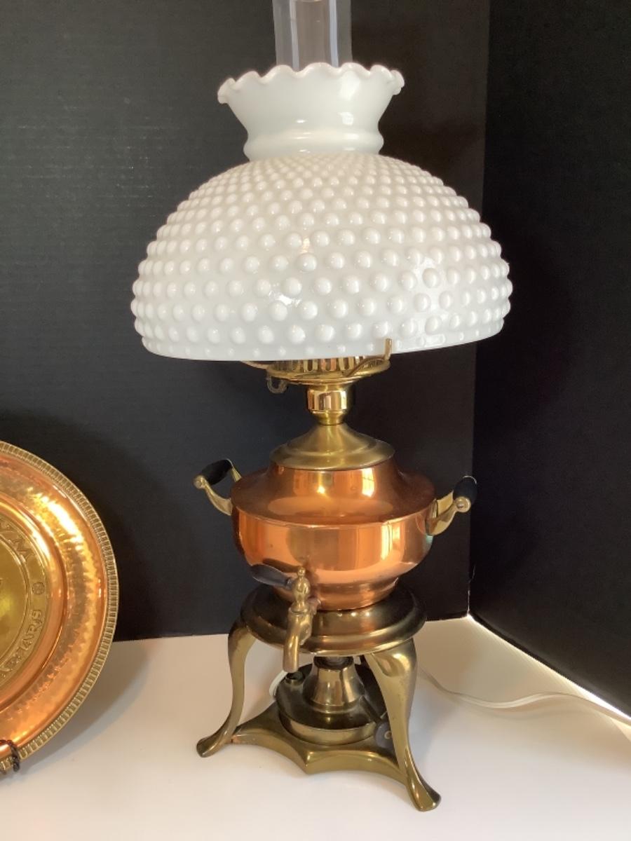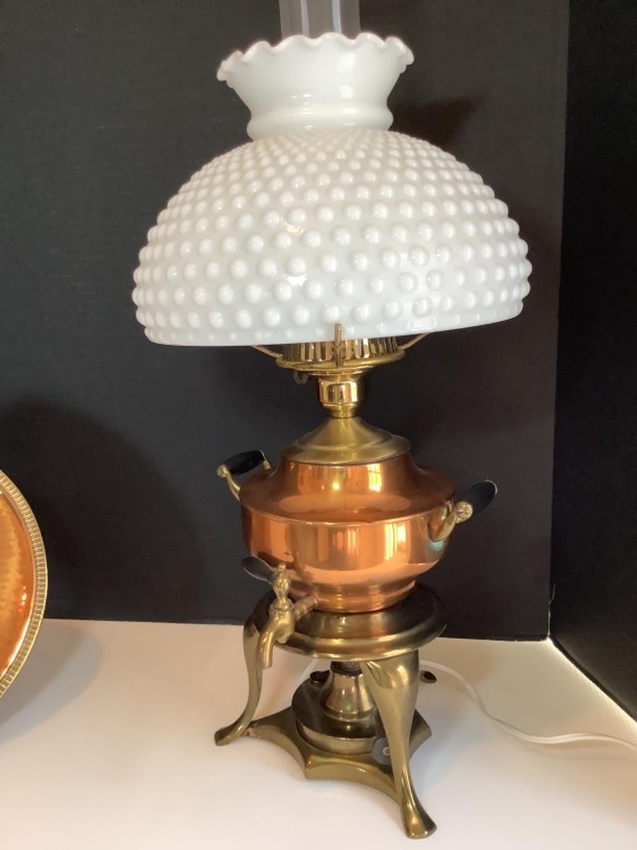 Copper / Brass Samovour Lamp with Milkglass Shade - 22” High